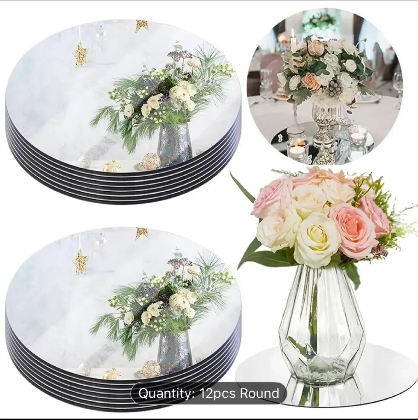 Selling a set of 12 round acrylic mirror patches, each measuring 15cm or 5.91 inches in diameter. These are great for adding a decorative touch to any room or event! They're in excellent condition and ready to be used for your next project or special occasion. Opened but never used - peel off film to reveal mirror.