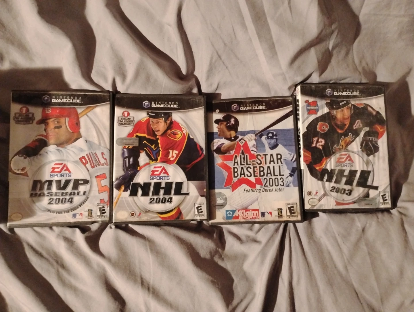 Selling a bundle of EA Sports games for the Nintendo GameCube! Includes MVP Baseball 2004, NHL 2004, All-Star Baseball 2003 featuring Derek Jeter, and NHL 2003. All games are in good condition and ready for some retro gaming fun