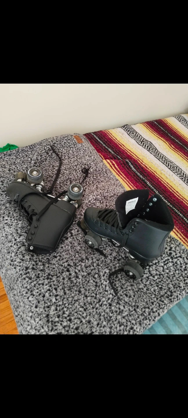 Selling a pair of Impala roller skates in black, size 6. They are in great condition and ready for some fun! Perfect for cruising around the park or rink. Get ready to roll!