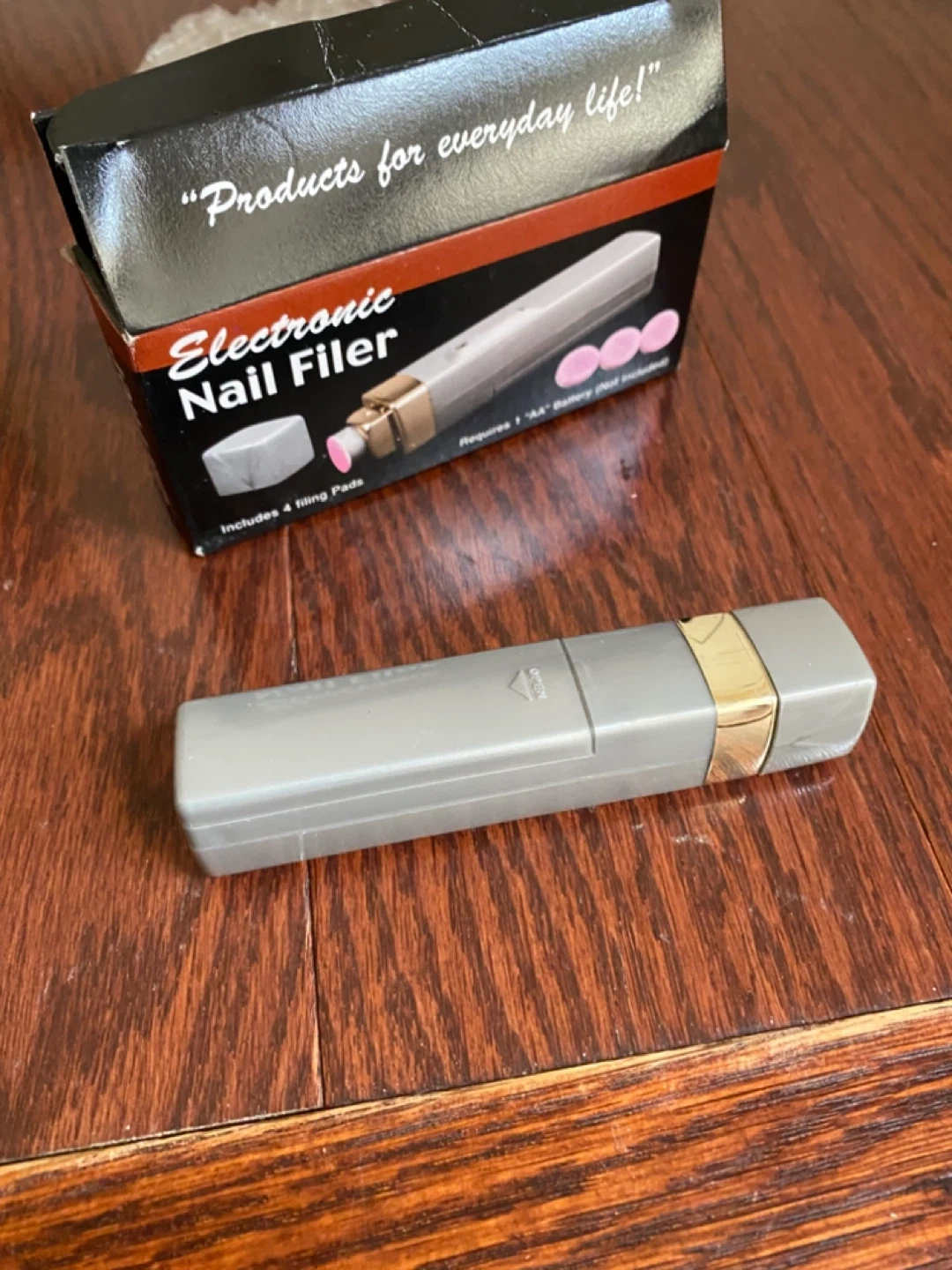 Electronic Nail Filer with 4 filing pads included! Requires 1 "AA" Battery (Not Included). Three file pads included