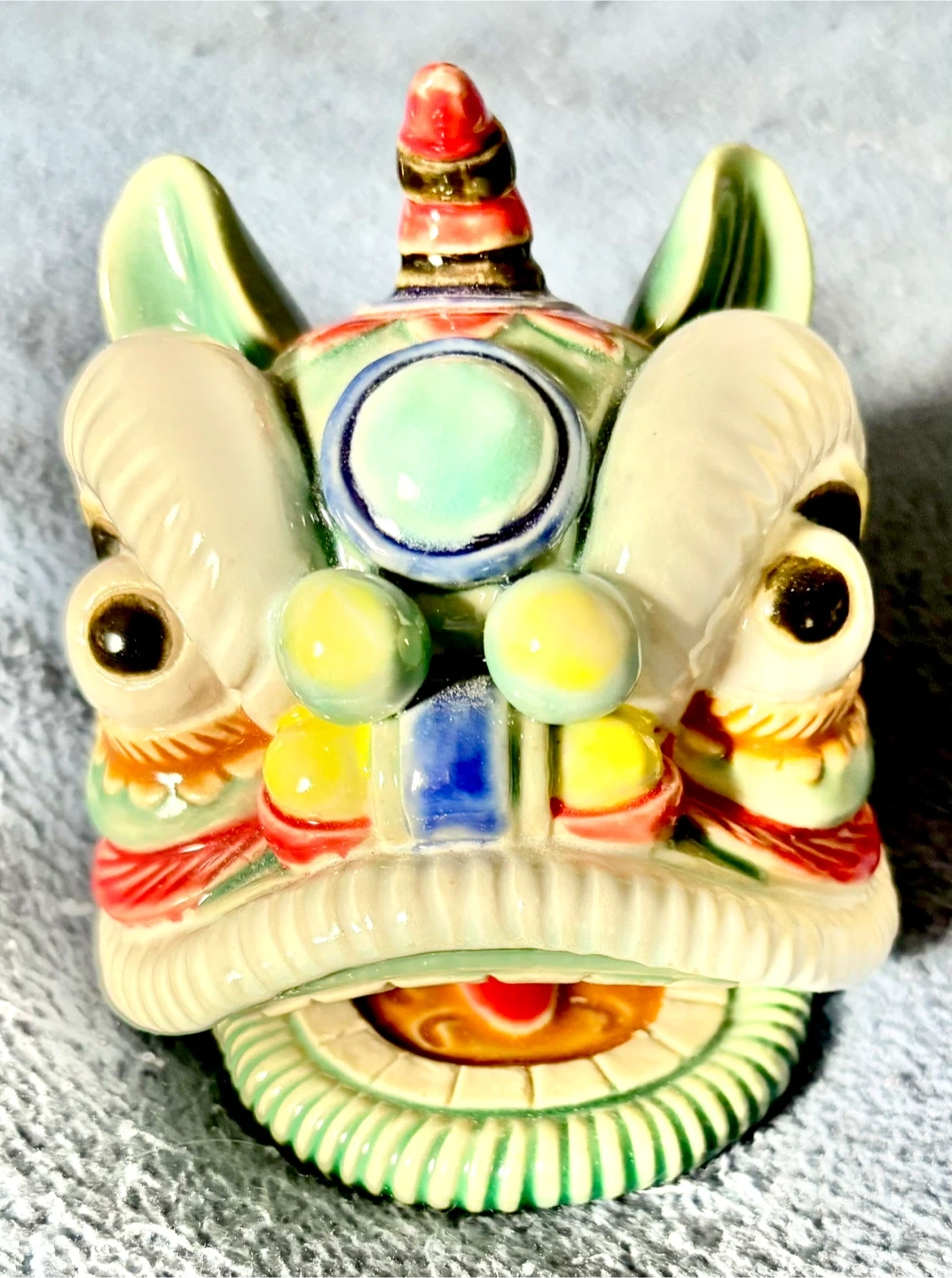 Here's a charming Dajue Buddhist Art dragon head figurine! It comes in its original 6” wooden box, making it a lovely piece for any collection or as a unique decorative item for your home. Cash only price firm.