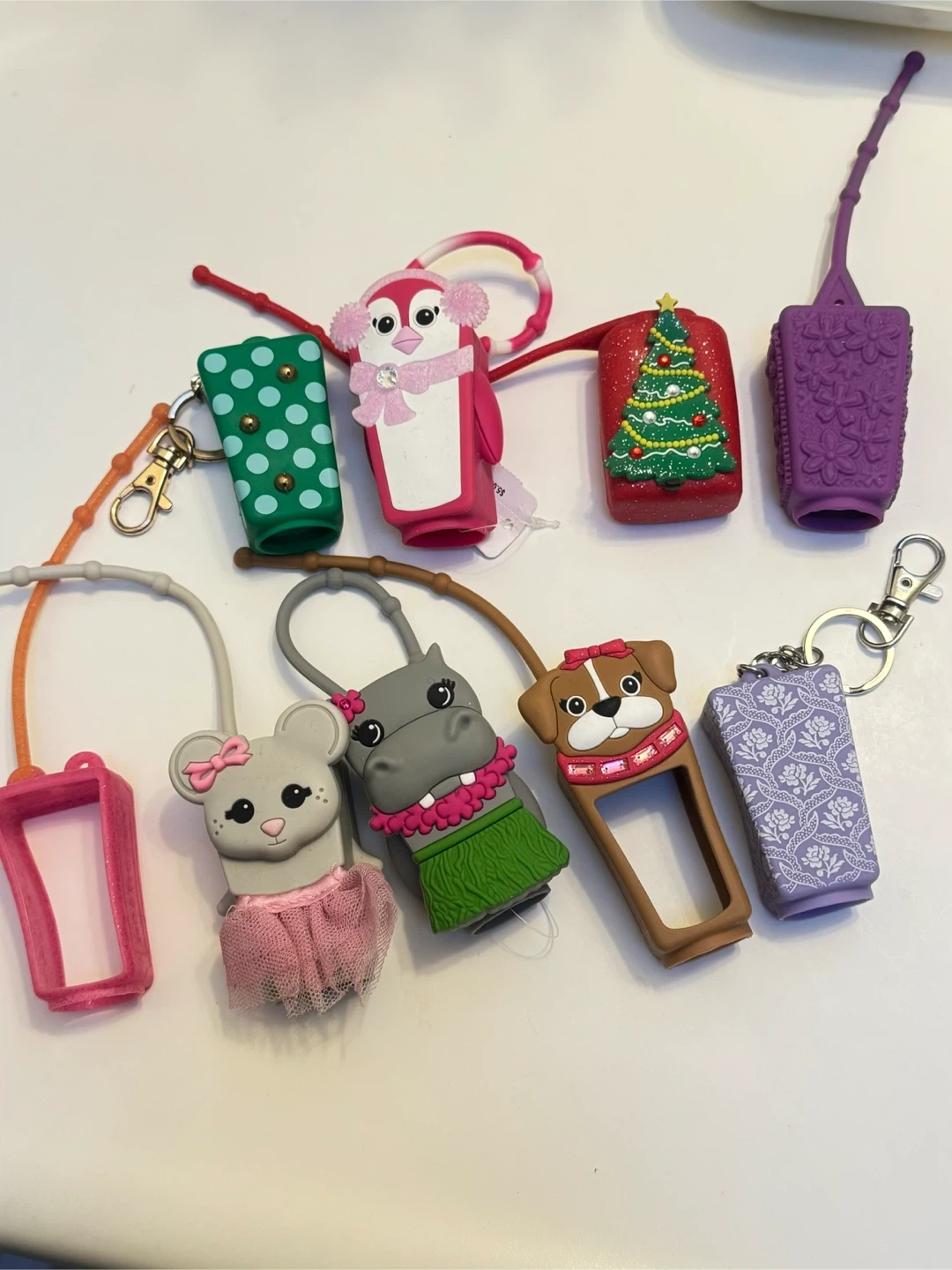 Selling a collection of Bath & Body Works hand sanitizer holders! They're all in great condition and ready to clip onto your bag or keys. Variety of cute designs to choose from!