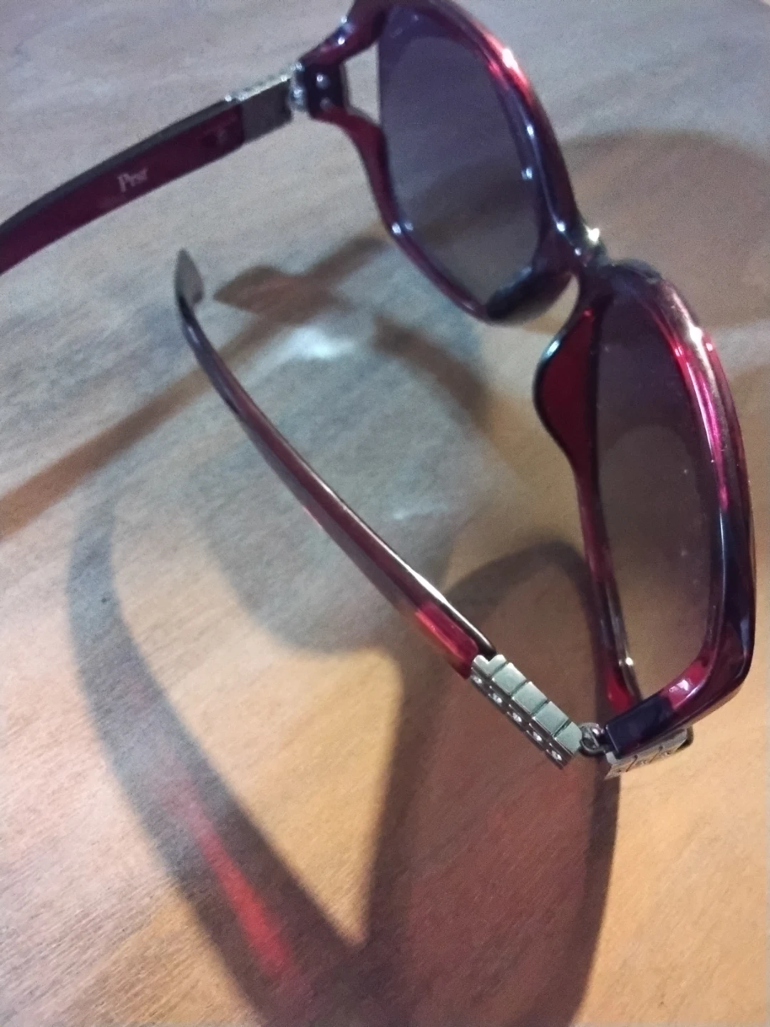 Lenses: Teardrop-shaped brown gradient lenses. Note that the left lens in your image appears to be cracked and requires replacement.