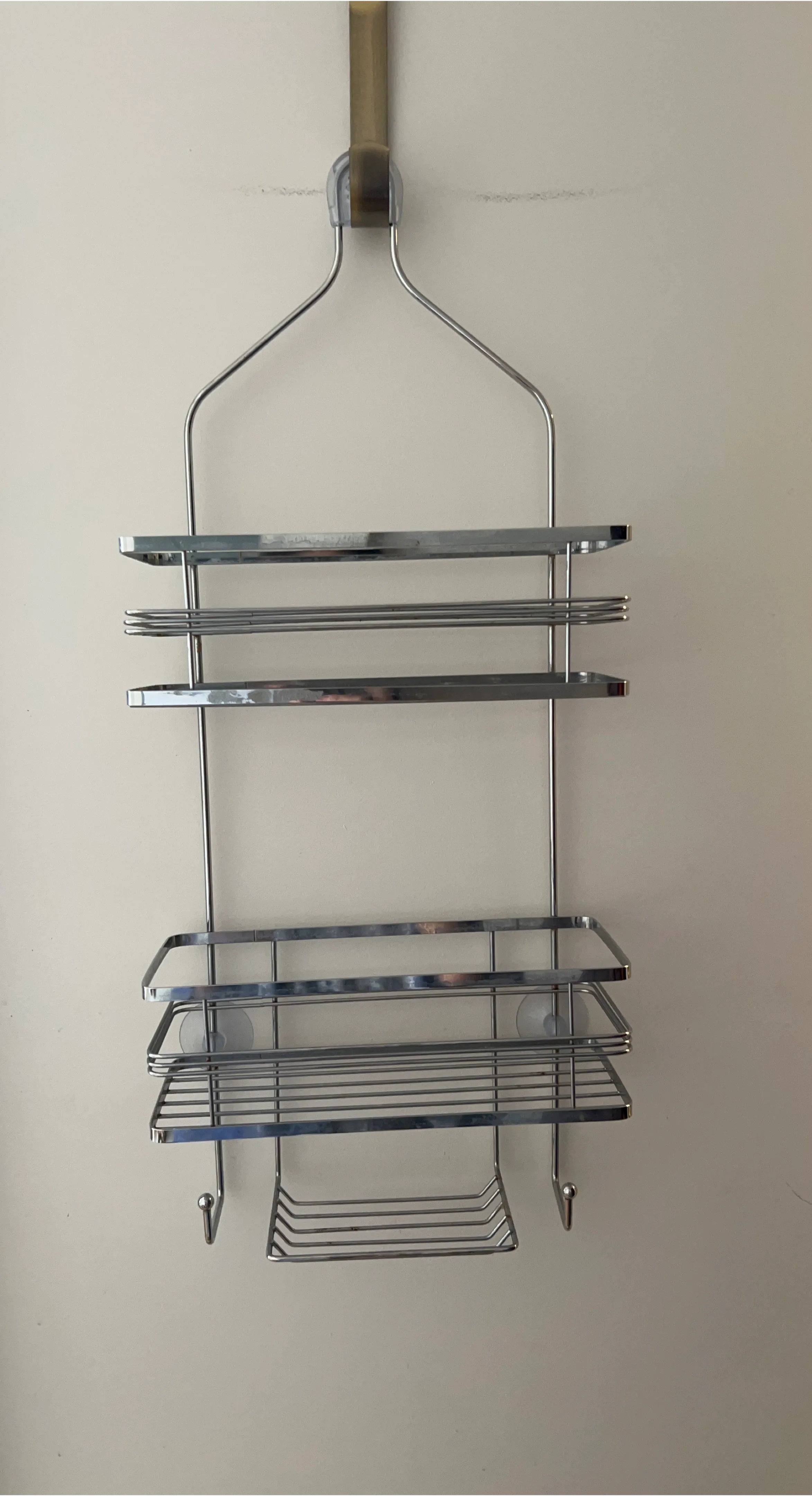 Selling a handy over-the-shower caddy! It's in great shape and ready to help organize your shower essentials. It has multiple shelves and hooks for all your soaps, shampoos, and more