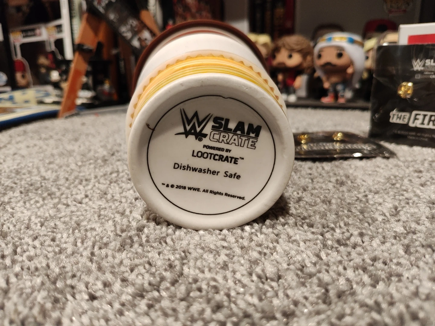 Selling a WWE Slam Crate Kofi Cup, a Xavier Woods Funko Pop (Only at Target), and a WWE coin. The cup features a design with "IT'S A NEW DAY" and the "KOFI CUP" logo. The bottom of the cup indicates it's dishwasher safe and powered by Loot Crate. The Funko Pop is #92, Xavier Woods (Up Up Down Down). Also, included in this lot is the PPV Limited Edition Britt Baker AEW figure. All of the items in this lot are in excellent condition! Add these rare wrestling items to your collection!