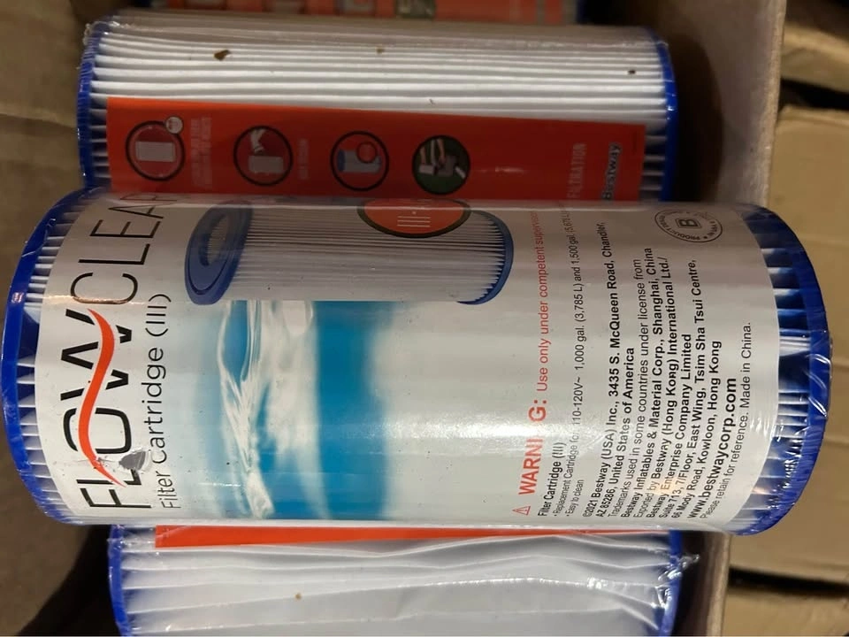 Keep your pool water clear and clean with a Filter Cartridge (Type III, Type A/C) by Bestway. This replacement cartridge measures 4.2 in x 8.0 in (10.6 cm x 20.3 cm) and is designed for 530-1,500 gal. (2,006-5,678 L) per hour filter pumps. They are easy to clean and sift dirt and debris out of your pool with your pump. Bestway recommends replacing them every 2 weeks for best results. Box of 6 available, price is per each. $50 for the box.