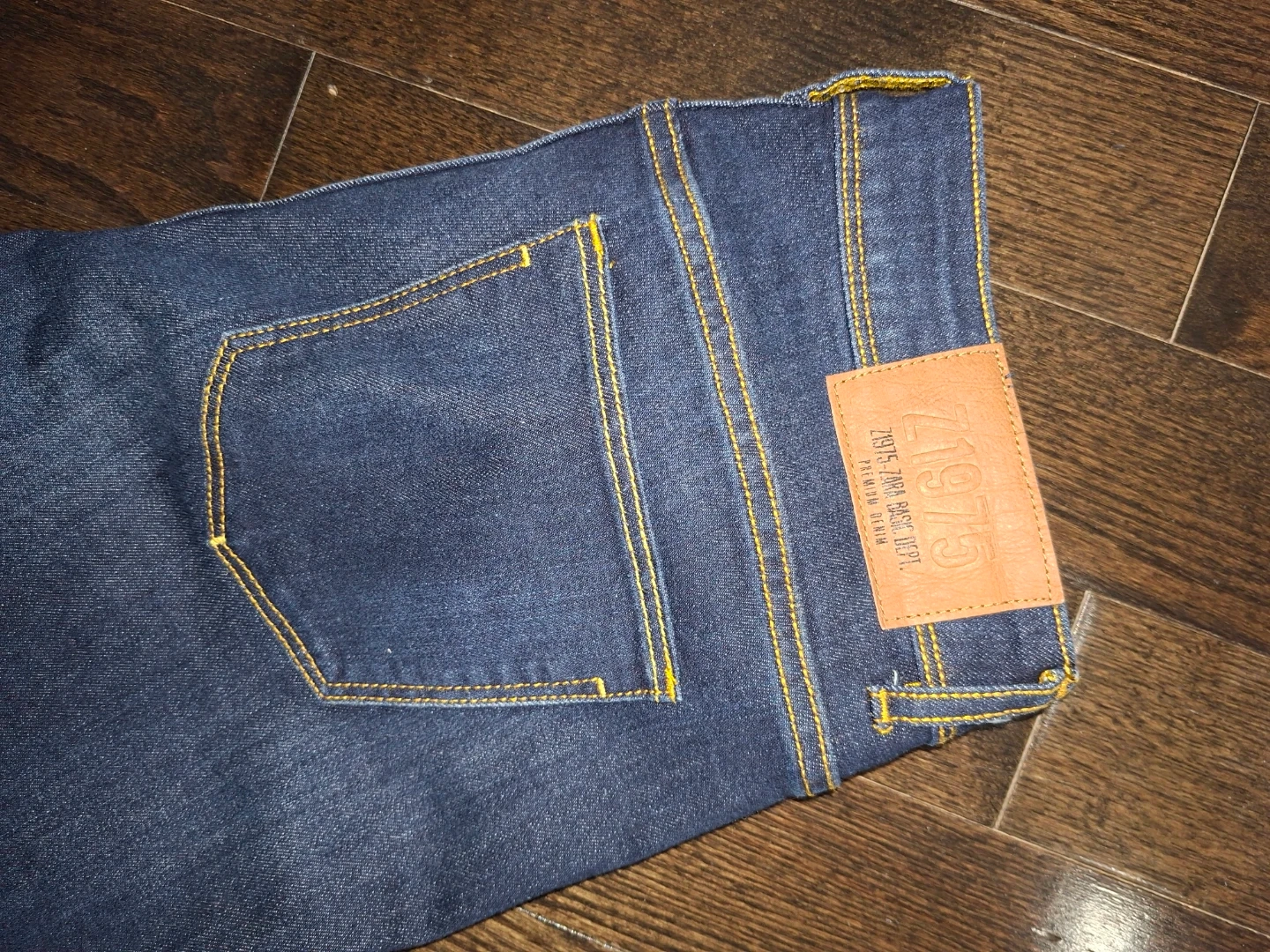 Selling a pair of Zara 7/1975 denim jeans in dark blue! They're in great condition and ready for a new wardrobe