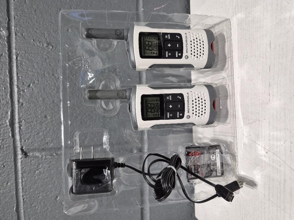 Selling a Brand New pair of Motorola Talkabout T260 Rechargeable 2-Way Radio (2-Pack) . Perfect for camping, hiking, or just keeping in touch with family and friends. Get in touch if you're interested!