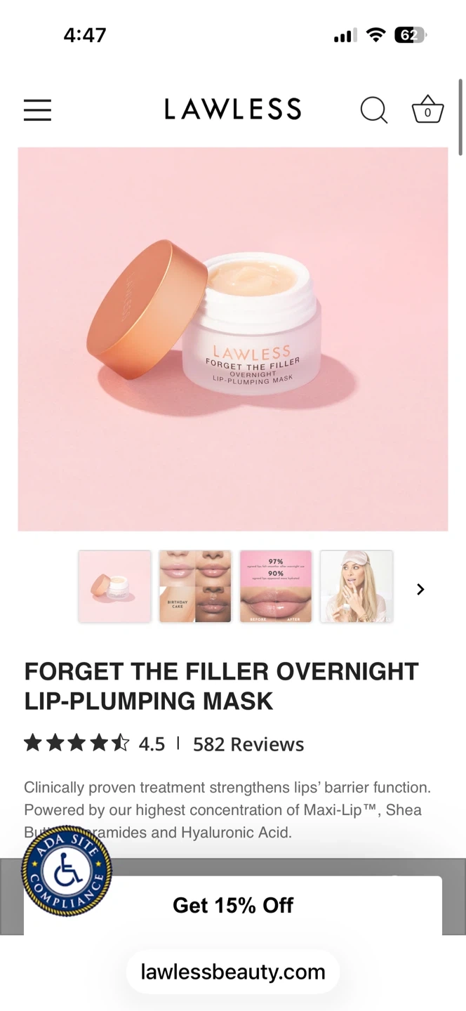 Selling a Lawless Forget The Filler Overnight Lip-Plumping Mask in the Birthday Cake flavour. It's clinically proven to strengthen the lips' barrier function and is powered by Maxi-Lip, Shea Butter, Ceramides, and Hyaluronic Acid