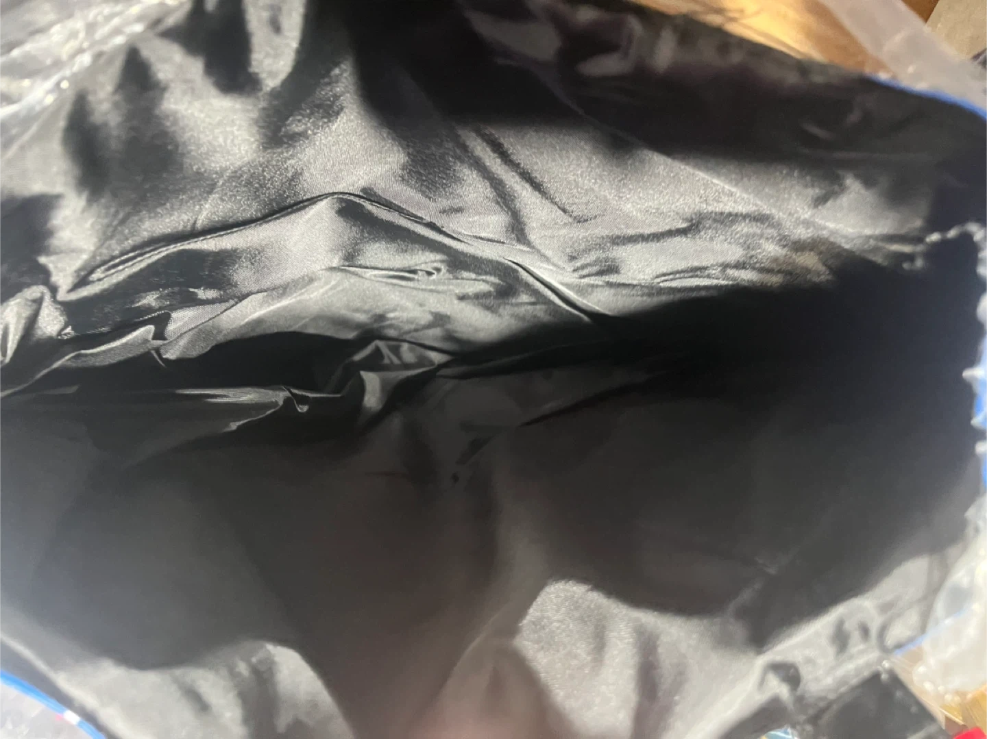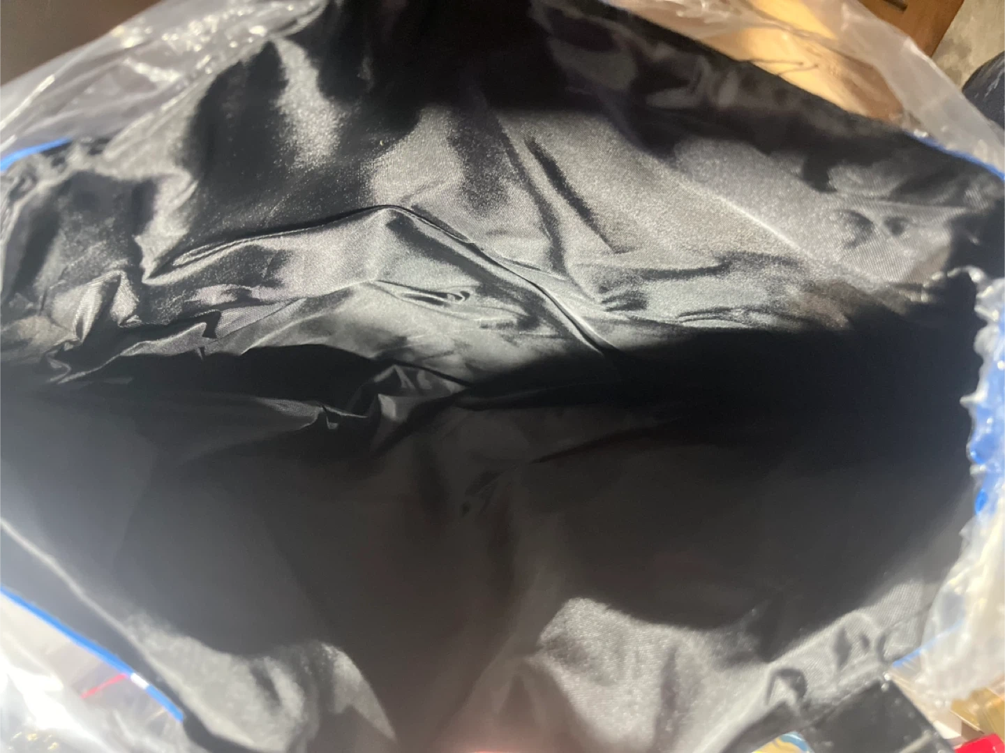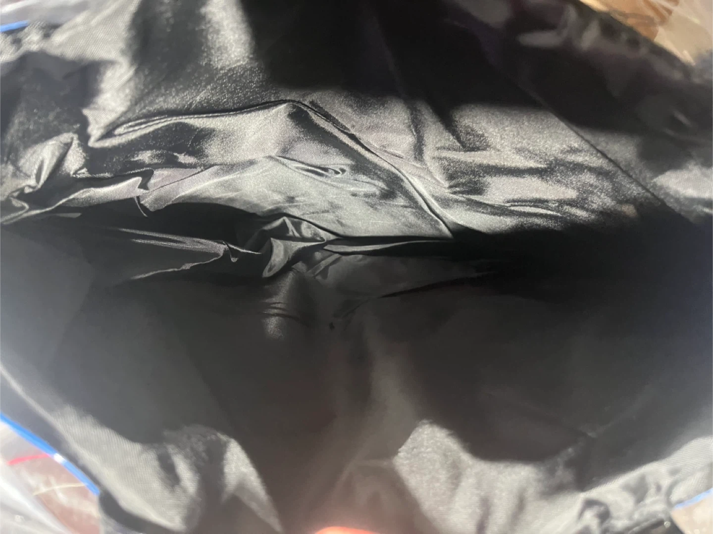 This is a tote bag featuring the New York City skyline. It's brand new and still in its original packaging. The bag has black handles and a colorful design showcasing the city's architecture.