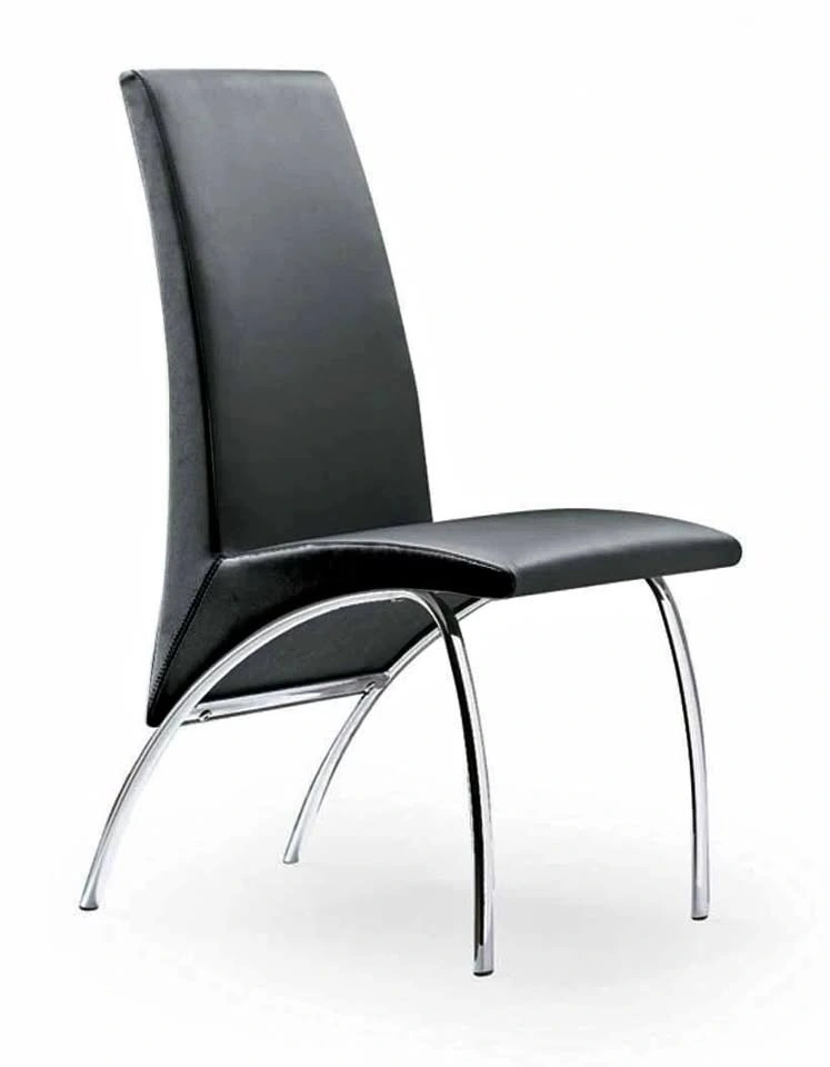 Designed for contemporary dining spaces, the Byrden side chair features faux leather upholstery complemented by a chrome metal base with dramatic arch legs. Its tall, solid back and cushioned seat enhance comfort without bulk, while the 18" seat height fits most dining tables. The armless profile offers versatility and easy placement. Available in multiple vibrant colors, it blends style with practicality. Simple assembly completes the package, making this chair a perfect pick for sleek, modern interiors seeking durability and aesthetic flair.