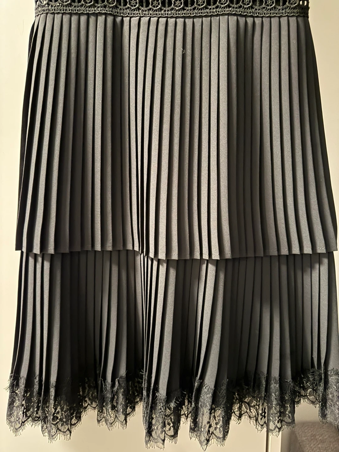 Selling a Zara black lace and pleated dress in size XS. It's in great condition and ready for a new wardrobe!