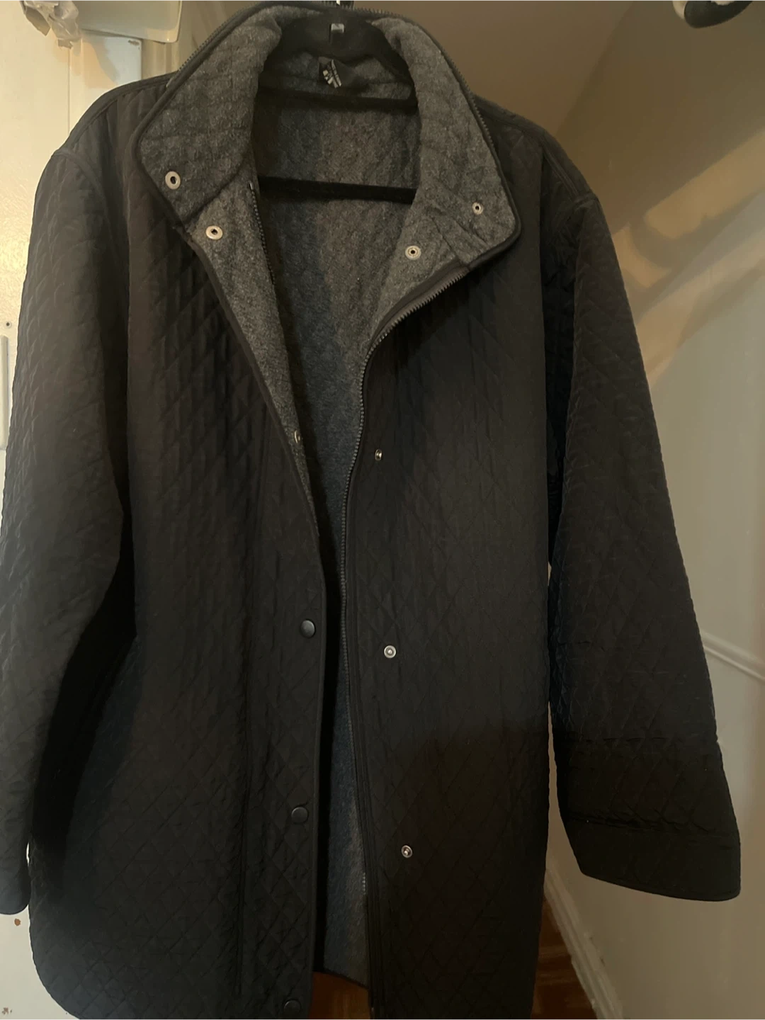 Selling a Hilary Radley black quilted jacket in size medium. It's in great condition and ready for a new owner! Perfect for layering or wearing on its own during cooler weather.