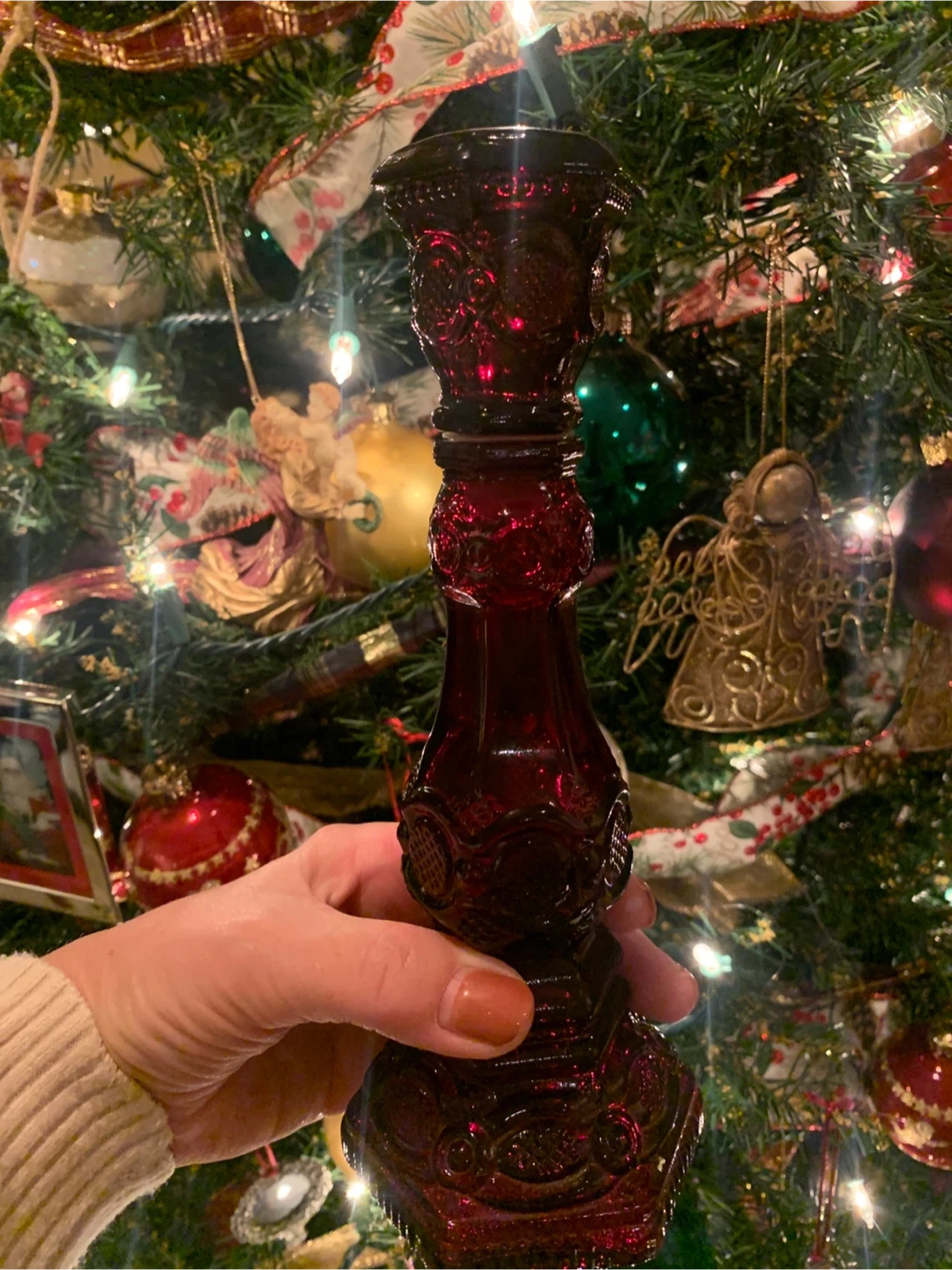 Selling a beautiful vintage 1876 Cape Cod ruby red glass candlestick holder from Avon. It was made in the 1970’s and was originally filled with cologne. It has no cracks or chips and is in great condition. It could function as a decor piece, filled with bubble bath or your fav perfume. It is about 9” tall. It would make a lovely addition to your bathroom or bedroom vanity. A very nice collector’s piece!
