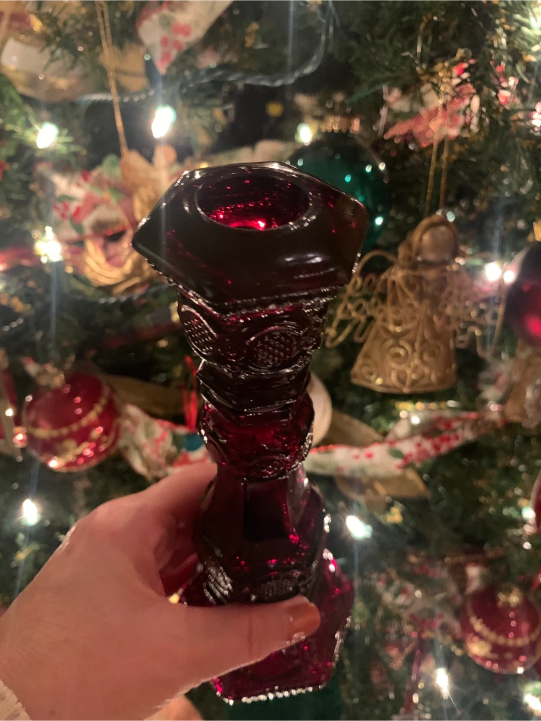 Vintage Avon Red Glass Candlestick Holder