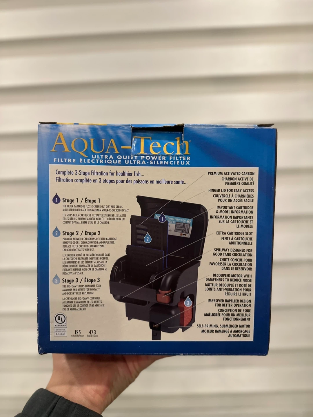 Selling an Aqua-Tech Ultra Quiet Power Filter for aquariums, suitable for 10-20 gallons (38 to 76 litres).