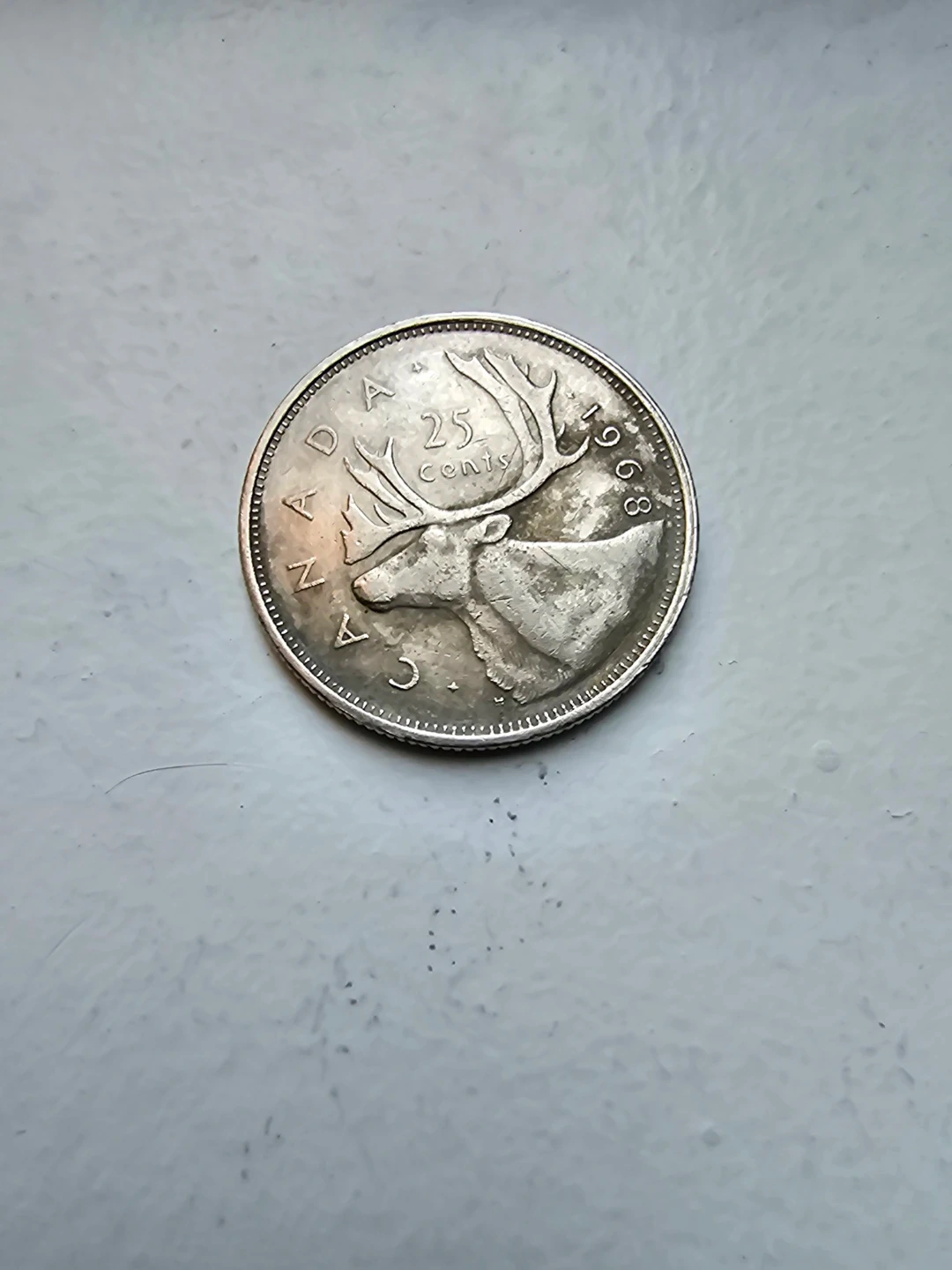 Selling a 1968 Canadian quarter. It features Queen Elizabeth II on one side and a caribou on the other. A great piece for collectors! Text me if you need details!๐
