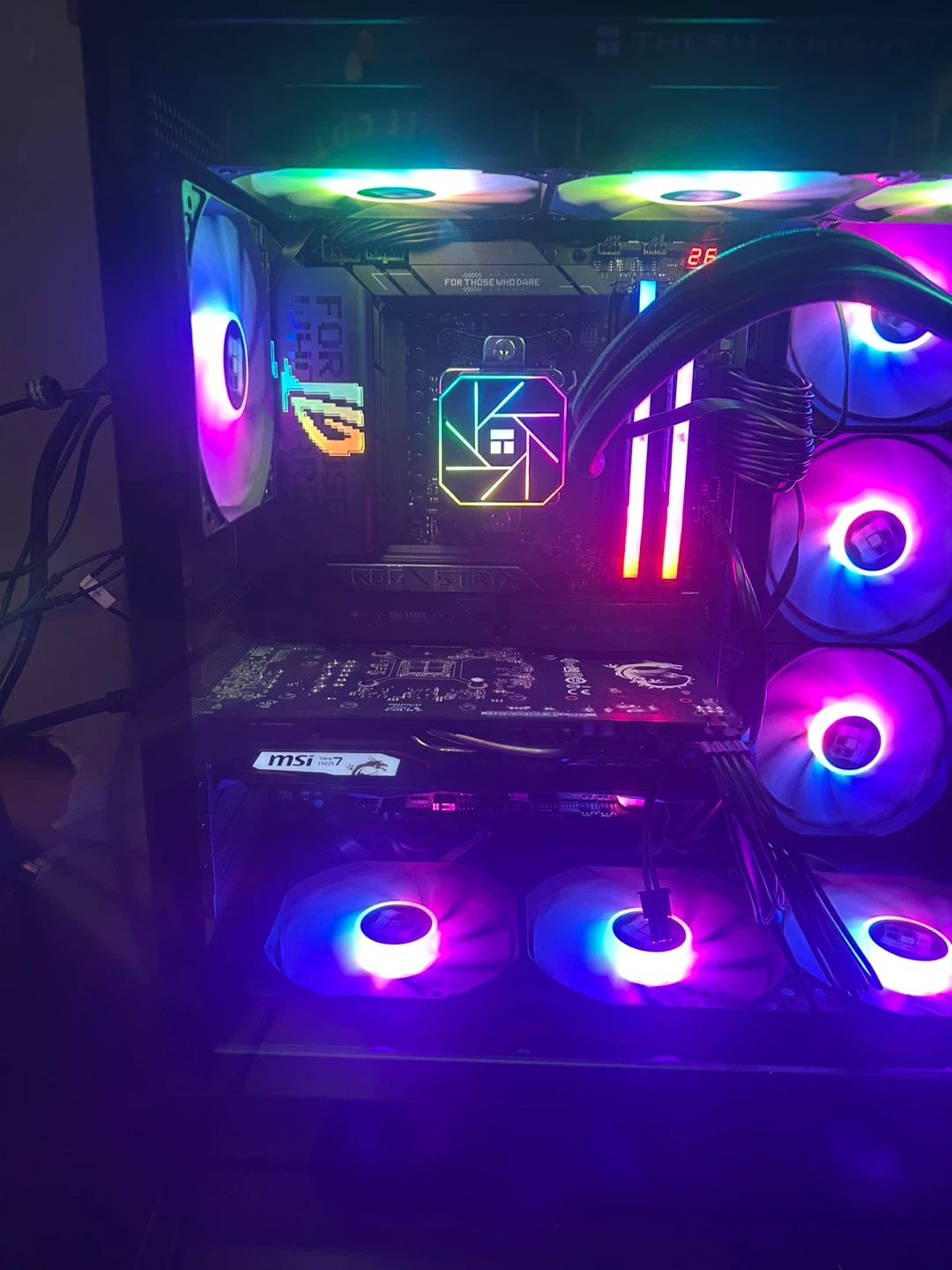 10 fans + 2 gpu fans | 1600 rpm max / aio fans 3600 rpm max