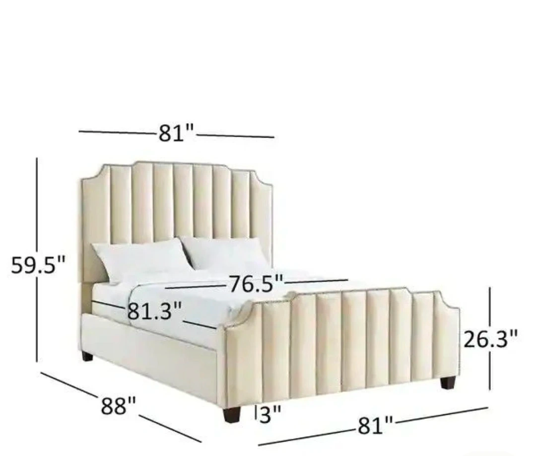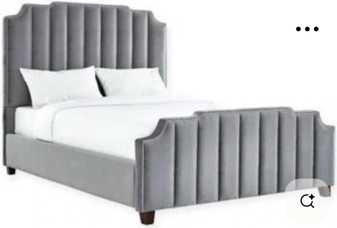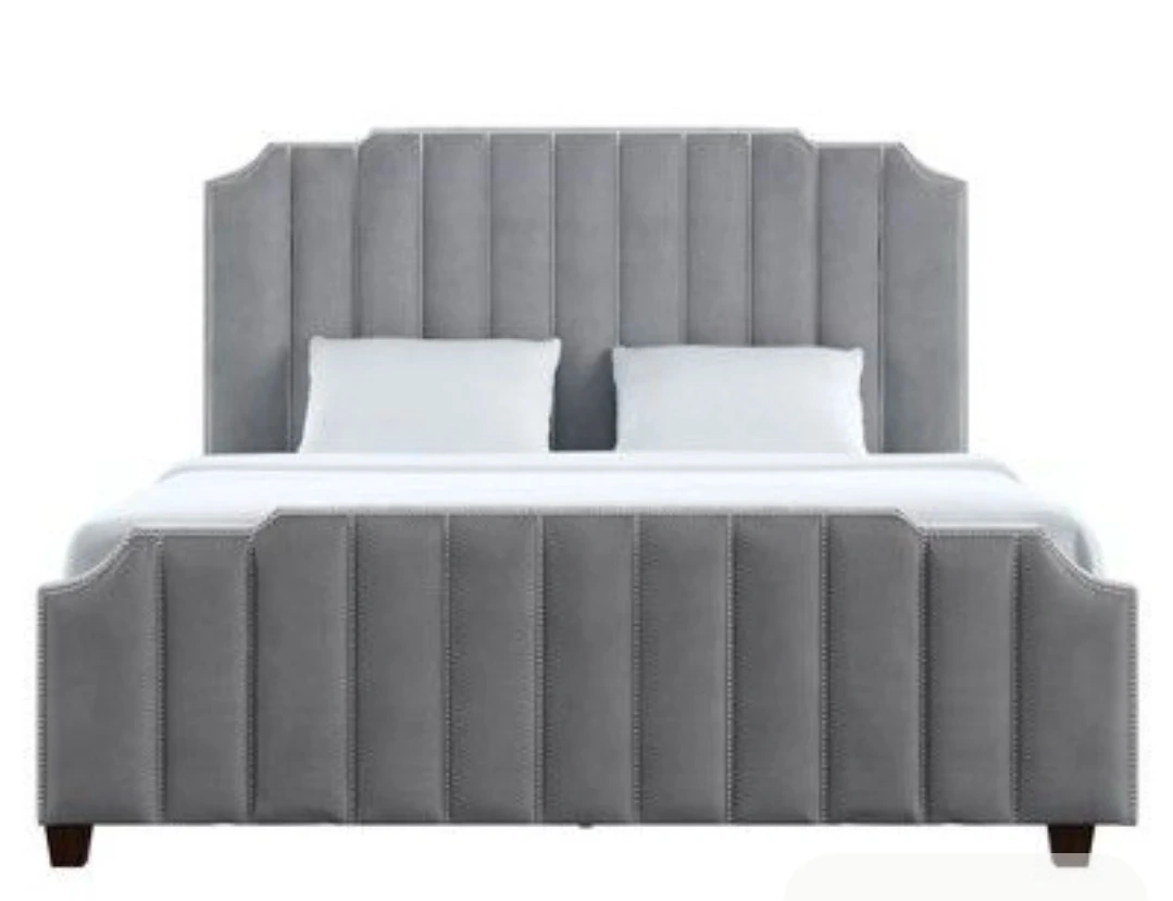 Selling a stylish upholstered platform bed frame in a lovely grey colour. It's a queen size and would look great in any bedroom! The bed frame has a modern design with vertical panels on the headboard and footboard. For more information msg me