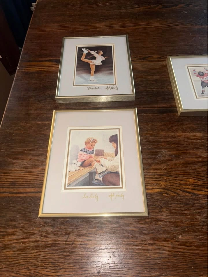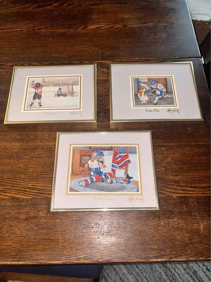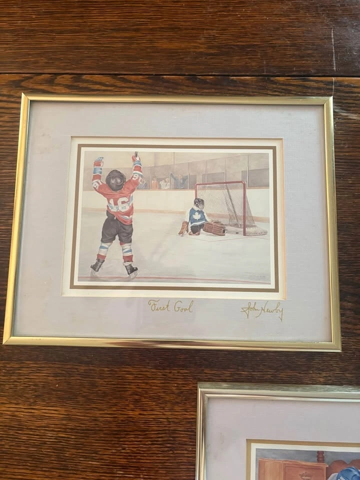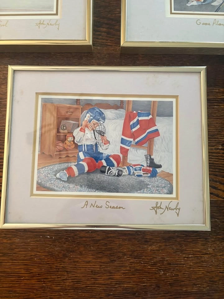 John Newby is a Canadian artist most famous for his iconic paintings depicting life as a kid growing up in Canada. Included in this set of five John Newby prints are two figure skating prints (portrait) and three hockey prints (landscape). All five prints are in their original 8”x10” frames.