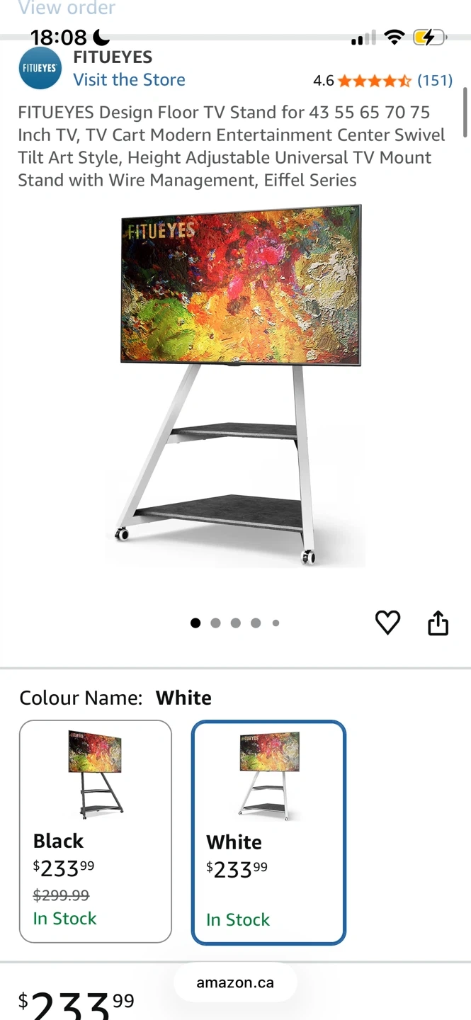 Looking to sell this FITUEYES Design Floor TV Stand! It's a modern entertainment center with a swivel and tilt art style. It's height adjustable and universal, fitting 43-75 inch TVs. It also features wire management and is part of the Eiffel Series.