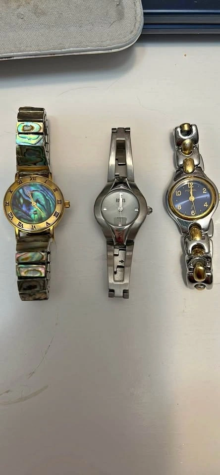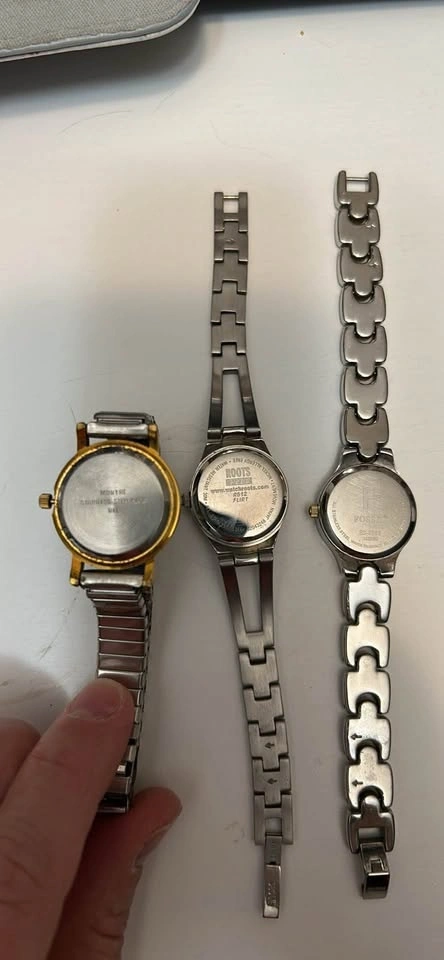 Roots- stainless steel silver band and baby blue face, quartz movement