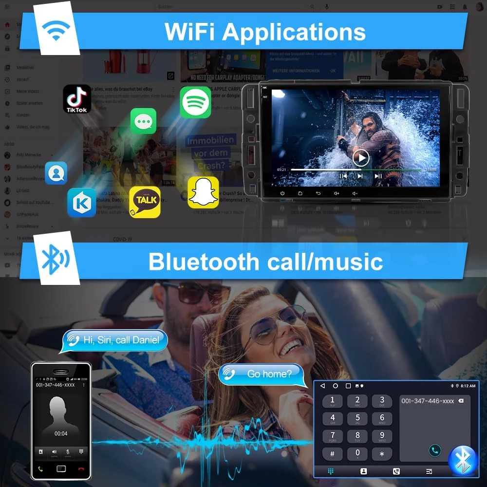 【Wireless CarPlay & Android Auto】For GMC/Chevrolet/BUICK support wired/wireless CarPlay and Android Auto. You can choose wired connection or wireless connection to carplay, connect to mobile phone, access mobile phone address book, mail, notification, map navigation, music, video and other information, and realize voice control. Wired Android auto through data cable connection, the wired Android auto car system can closely integrate the user's Android phone and player.