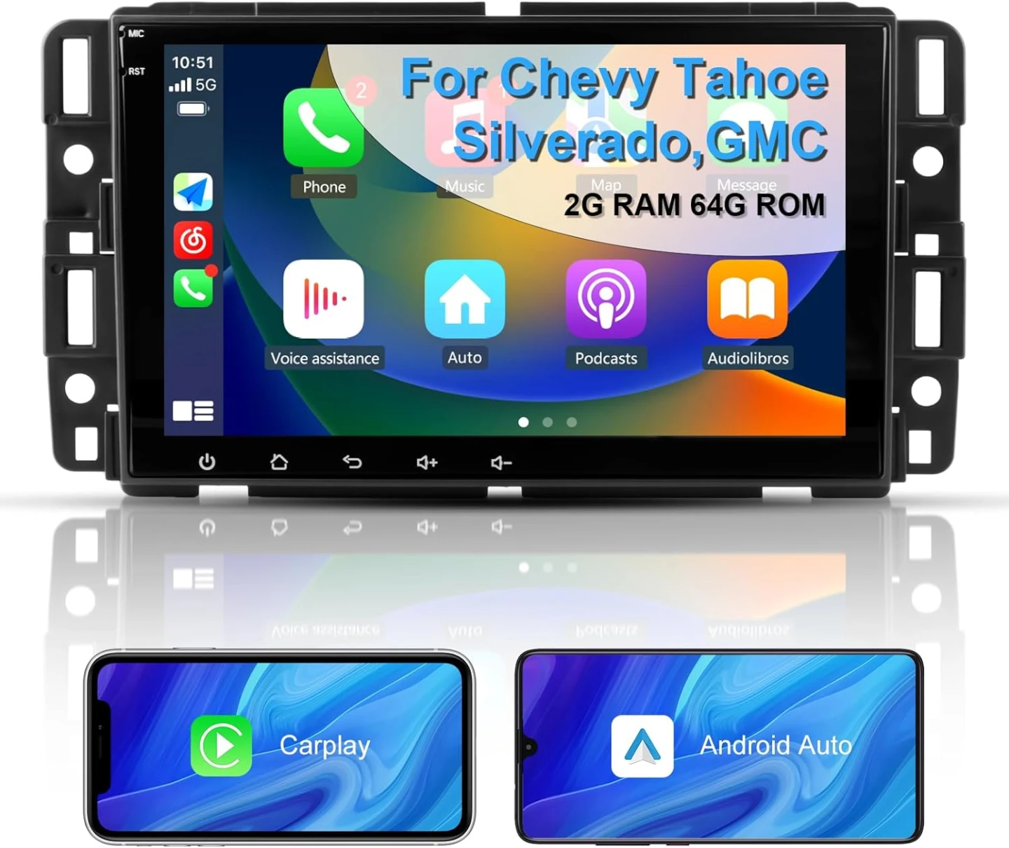 8 inch Car Stereo for Chevrolet Silverado GMC Sierra Yukon 2007-2013, Android 13 Touch Screen Silverado 1500 Radio Replacement CarPlay Android Auto Multimedia Video Player - with Backup Camera, Brand New in the Box/Sealed