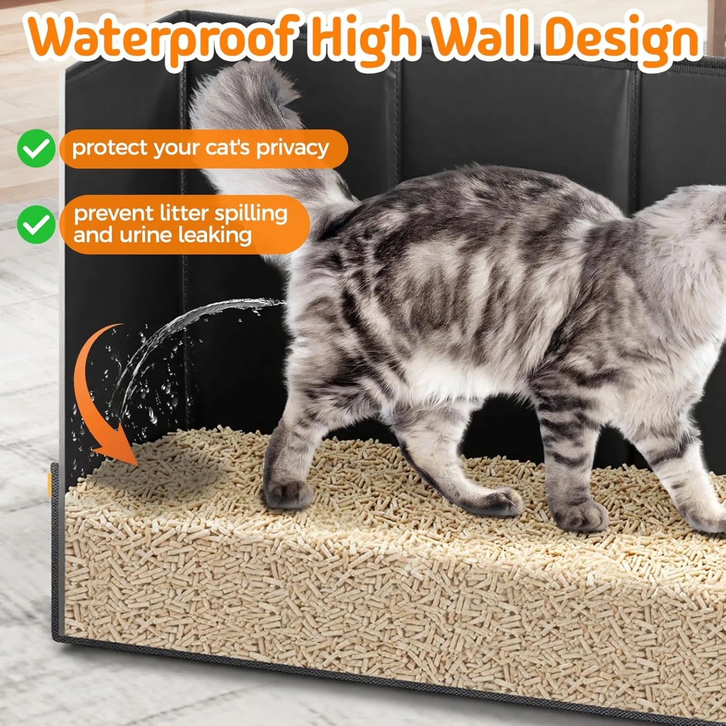 STURDY AND LIGHT-WEIGHT: Crafted with durable, scratch-resistant and waterproof material for superior leak-proof performance and long-lasting use. Reinforced sides add extra sturdiness, but need to ensure that the corners of the fence and the corners of the litter box form a straight line while installing.