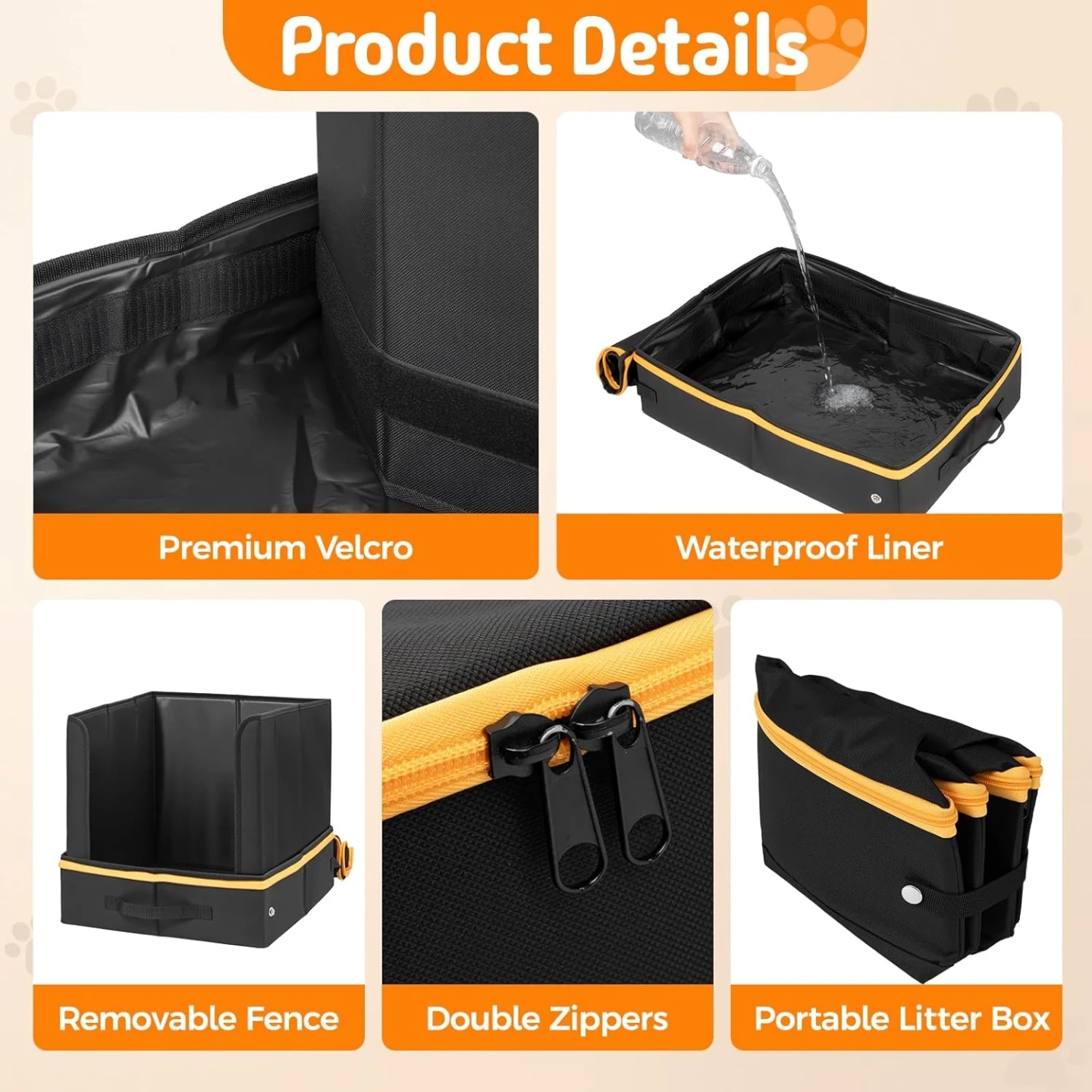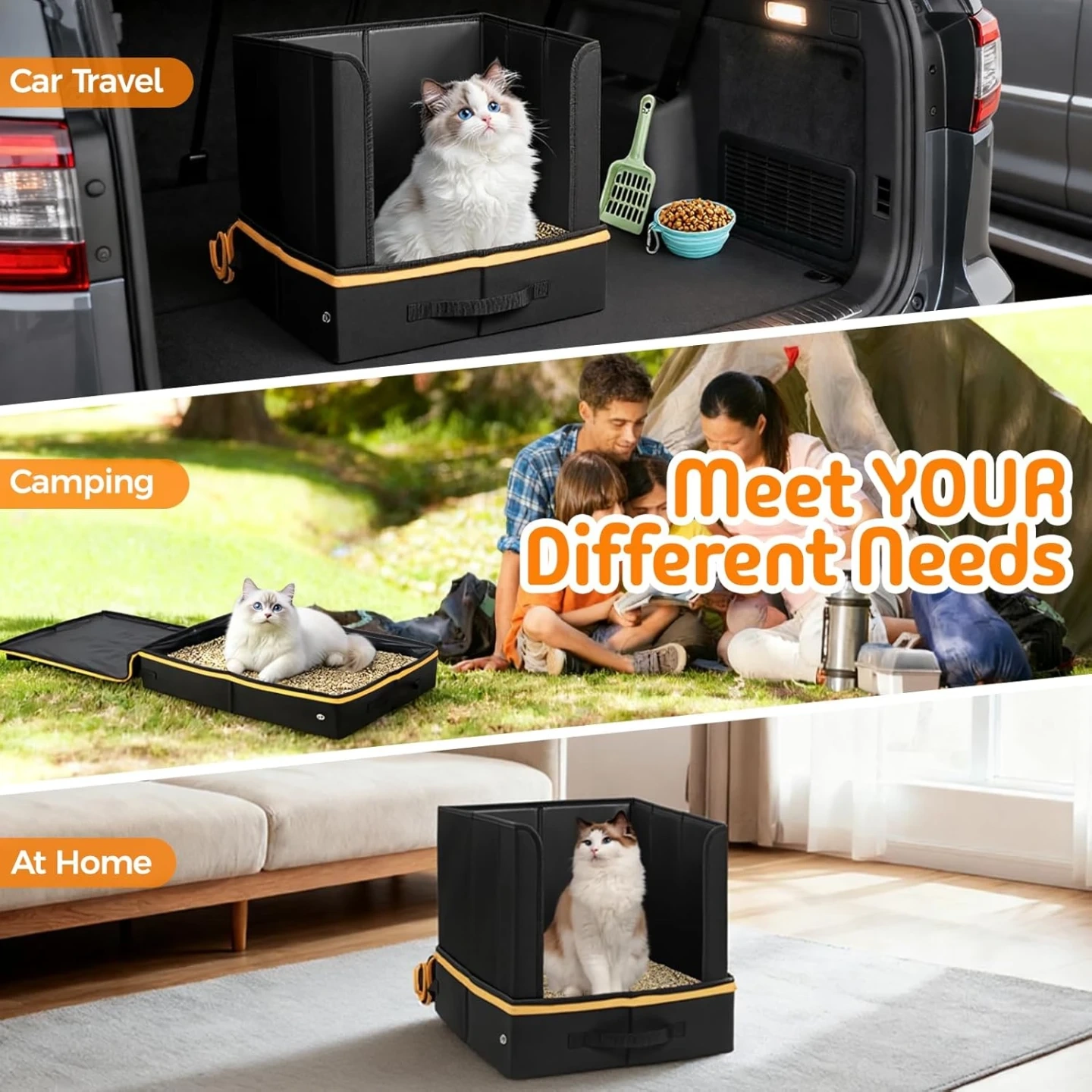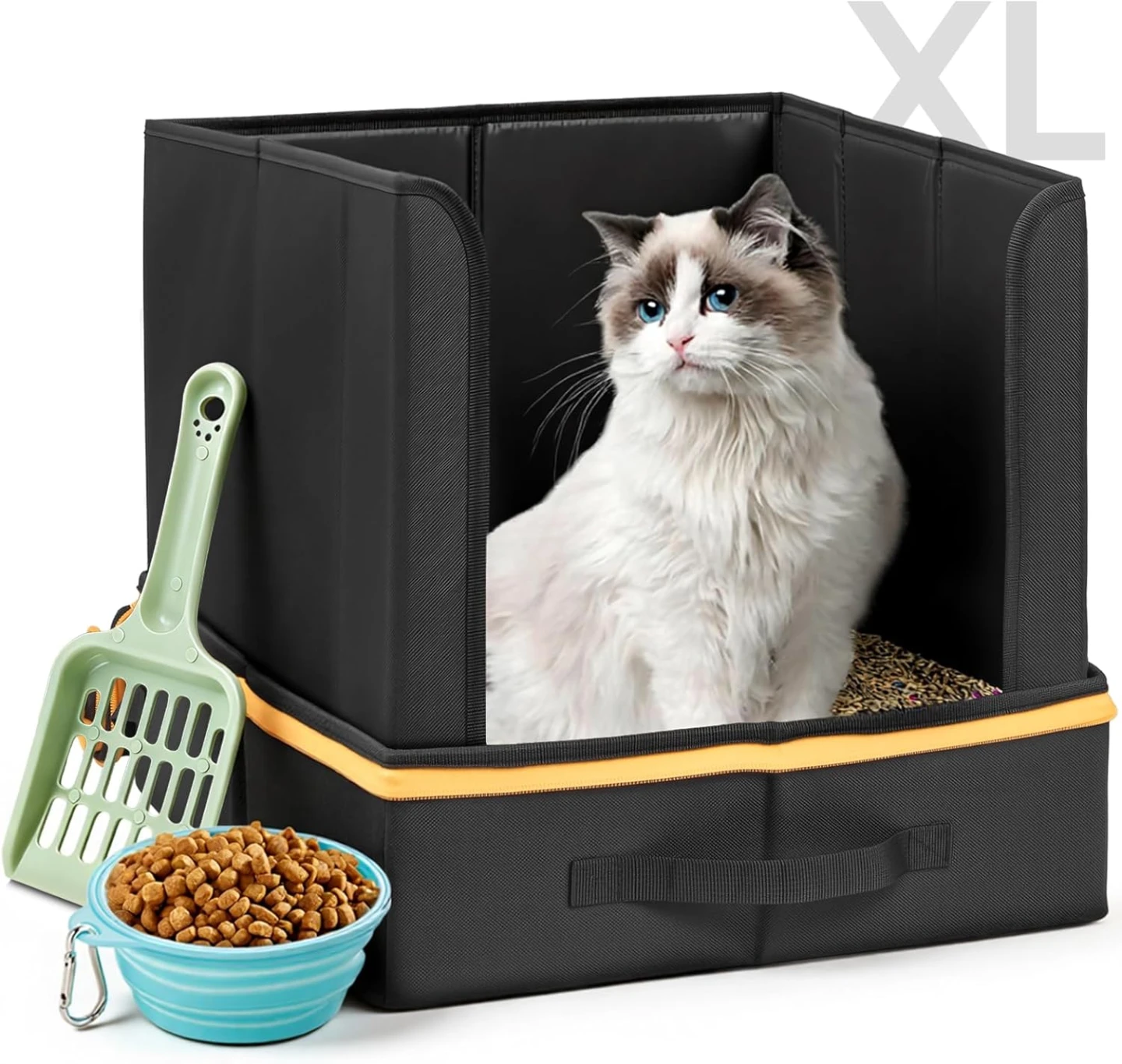 TRAVEL LITTER BOX FOR CATS: Our travel litter box for cats comes with a litter scoop, a collapsible water bowl, making every road trip, hotel stay, or flight simpler, cleaner, and more enjoyable. No more scrambling to gather separate supplies, you could store everything you need in this portable pack.