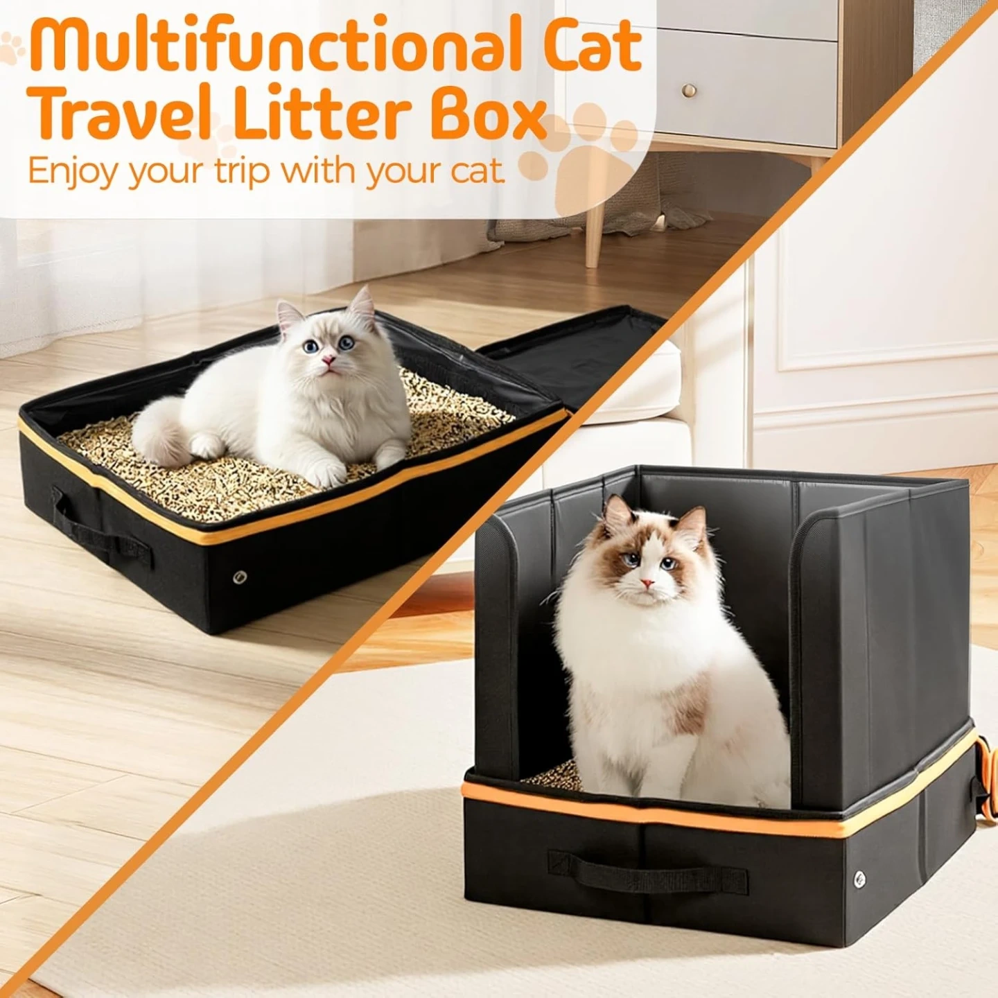 Travel Litter Box for Cats with High Side, Portable Kitty Litter Travel Box with Collapsible Baffle Waterproof Scratch-Proof Kitty Litter Pan for Car, Road Trip, Hotel, Brand New in the Box/Sealed