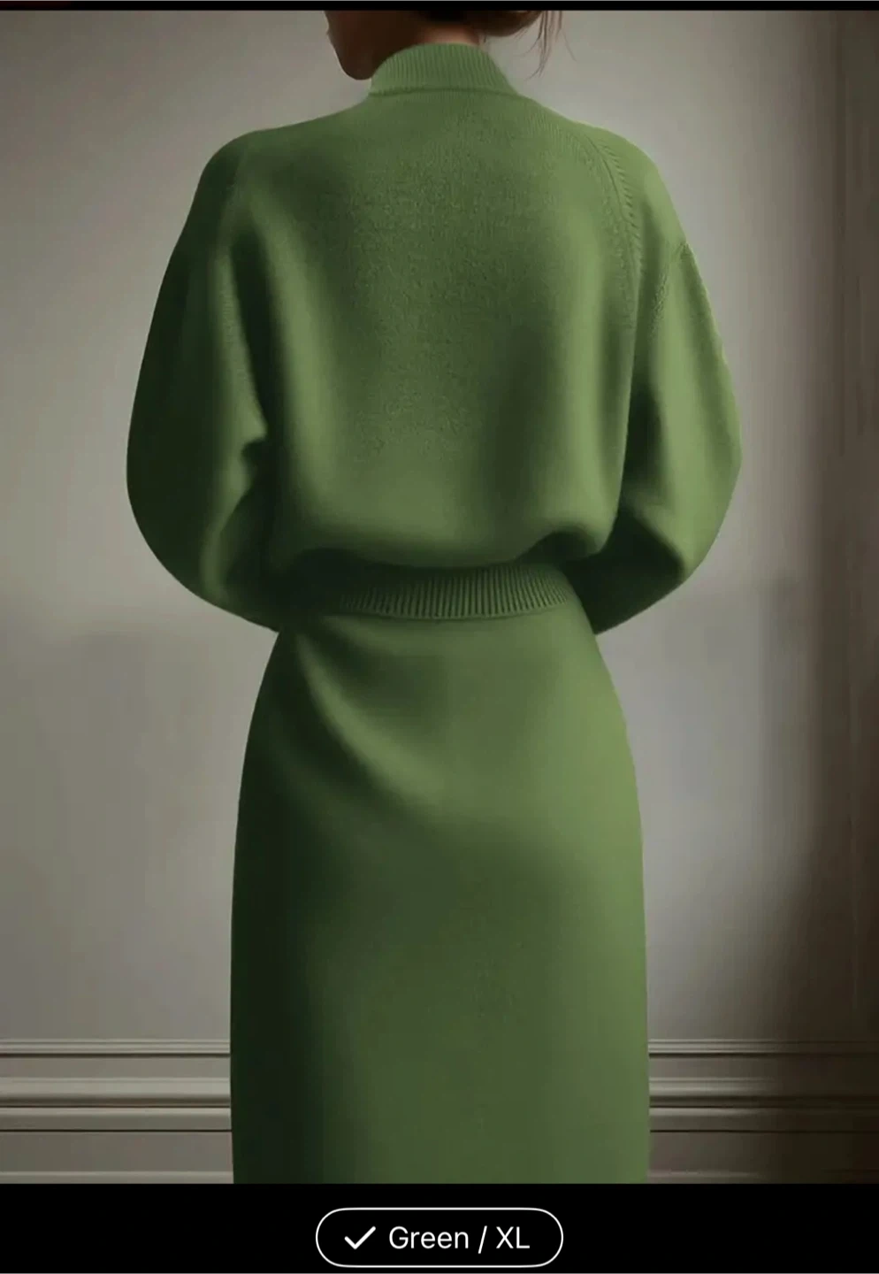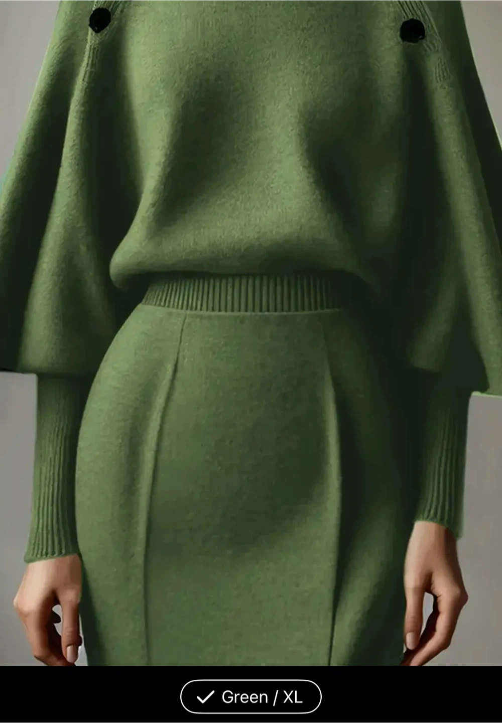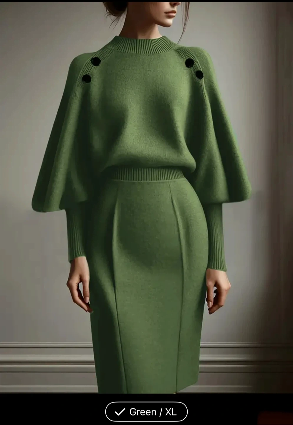 Elegant Temperament Solid Color Lamb Leg Sleeve Bodycon Dress Women'S Dress in size XL. This set is perfect for a chic and comfortable look. The material is soft and cozy, making it ideal for cooler weather. It features a unique design with button details on the shoulders. A great addition to any wardrobe!