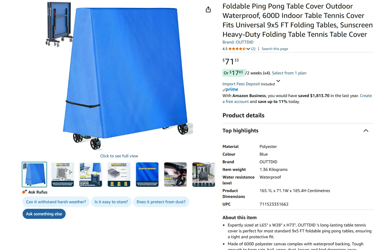As a complete coverage cover protects your ping pong table from dust, elements, scratches, and damage when not in use.