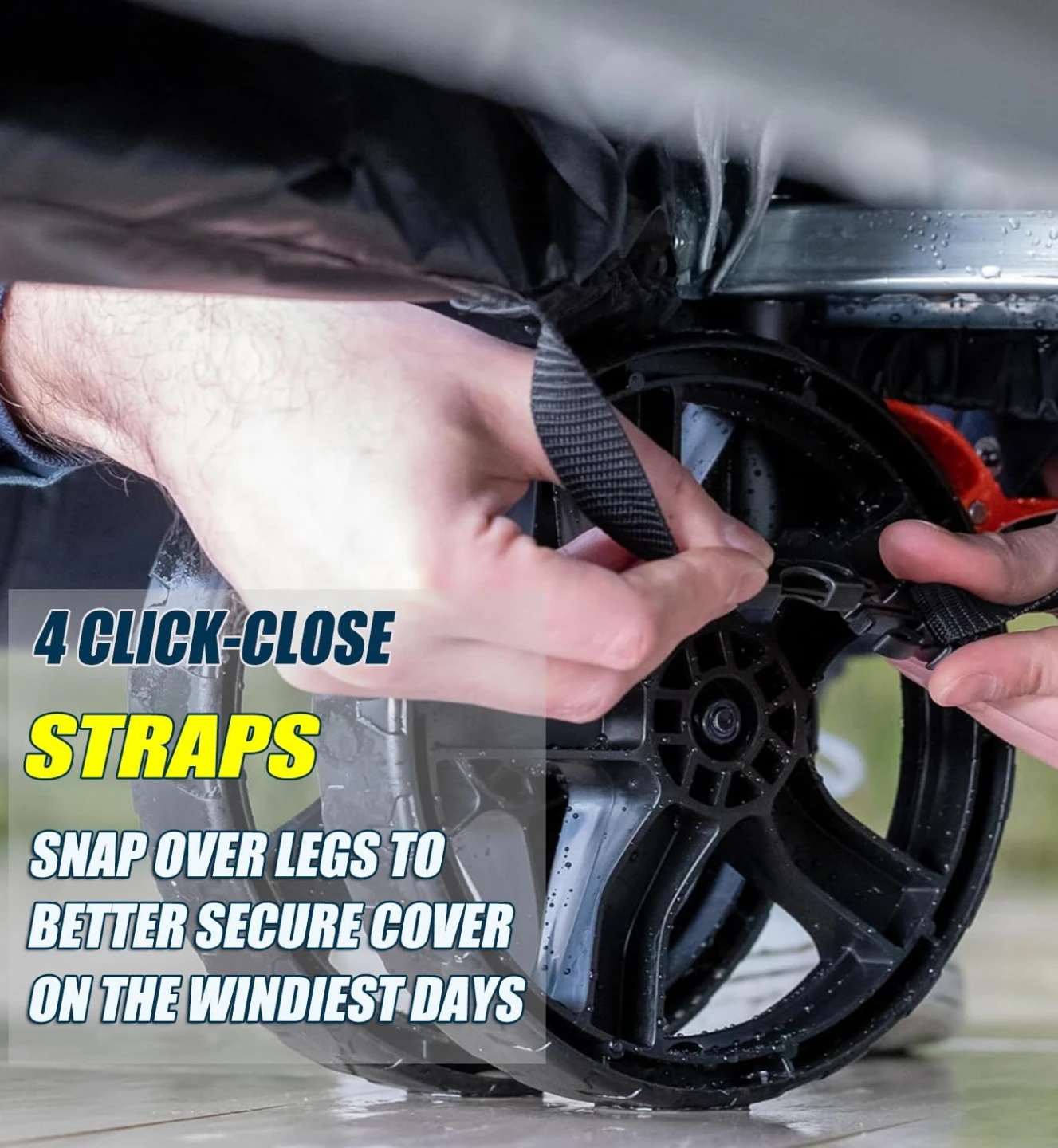 Made of 600D polyester canvas complex with waterproof backing. Tough enough to keep rain, hail, snow, dust, leaves and bird droppings away.