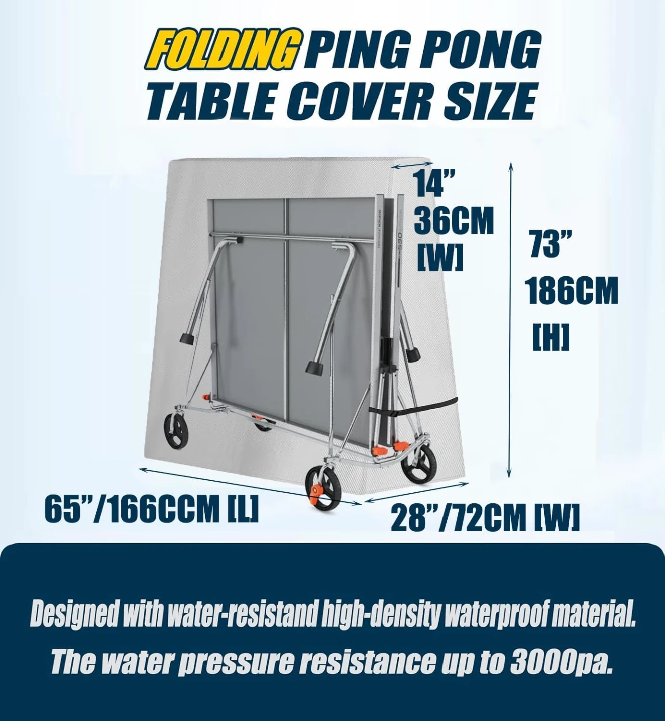 Expertly sized at L65" x W28" x H73", OUTTDID 's long-lasting table tennis cover is perfect for most standard 9x5 FT foldable ping pong tables, ensuring a tight and protective fit.