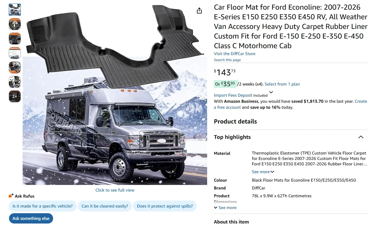 Custom Fit for Ford Econoline/E-Series 2007-2026: Designed specifically for Ford E-Series (Econoline) E150 E250 E350 E450 2007 2008 2009 2010 2011 2012 2013 2014 2015 2016 2017 2018 2019 2020 2021 2022 2023 2024 2025 2026 models. This front car floor mat are custom fit for Ford Van RV E-150, E-150 Club Wagon, E-250, E-350 Club Wagon, E-350 Super Duty, and E-350 Super Duty models