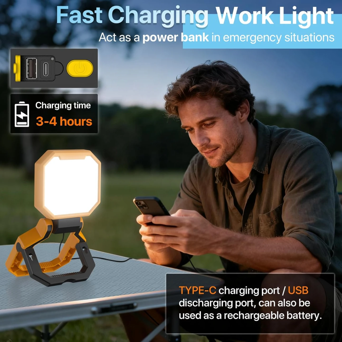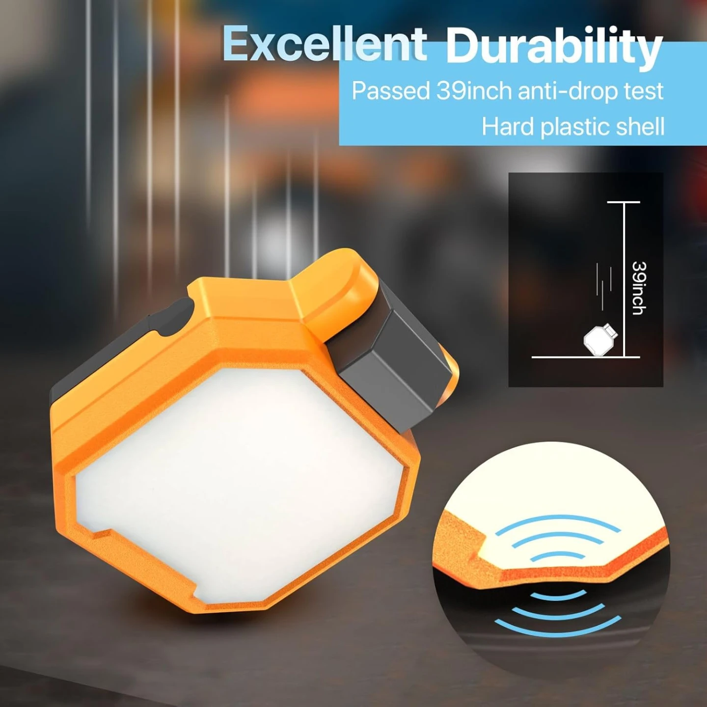 Robust and practical:Soft rubberized edges around the light cushion drops and provide a comfortable grip. The portable rechargeable work lights can be connected to a usb for charging at the same time as it turns on, making it more like a rechargeable treasure and work light in one.