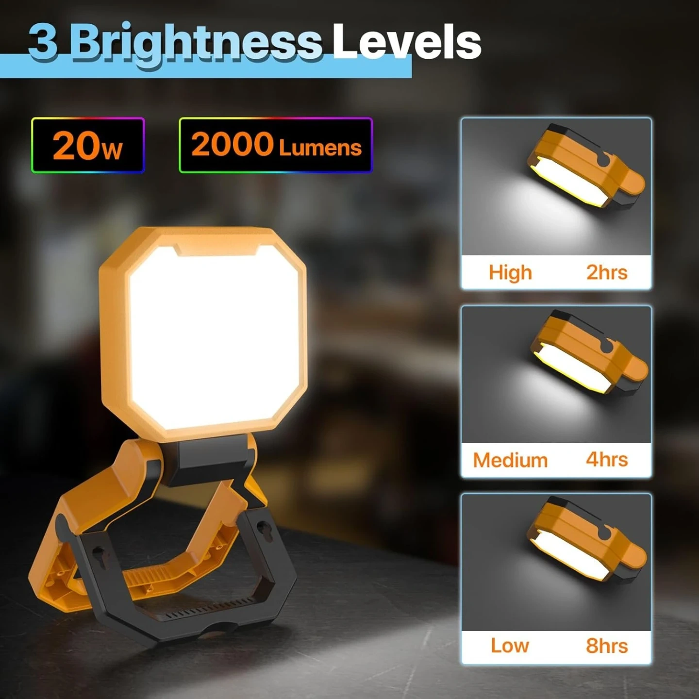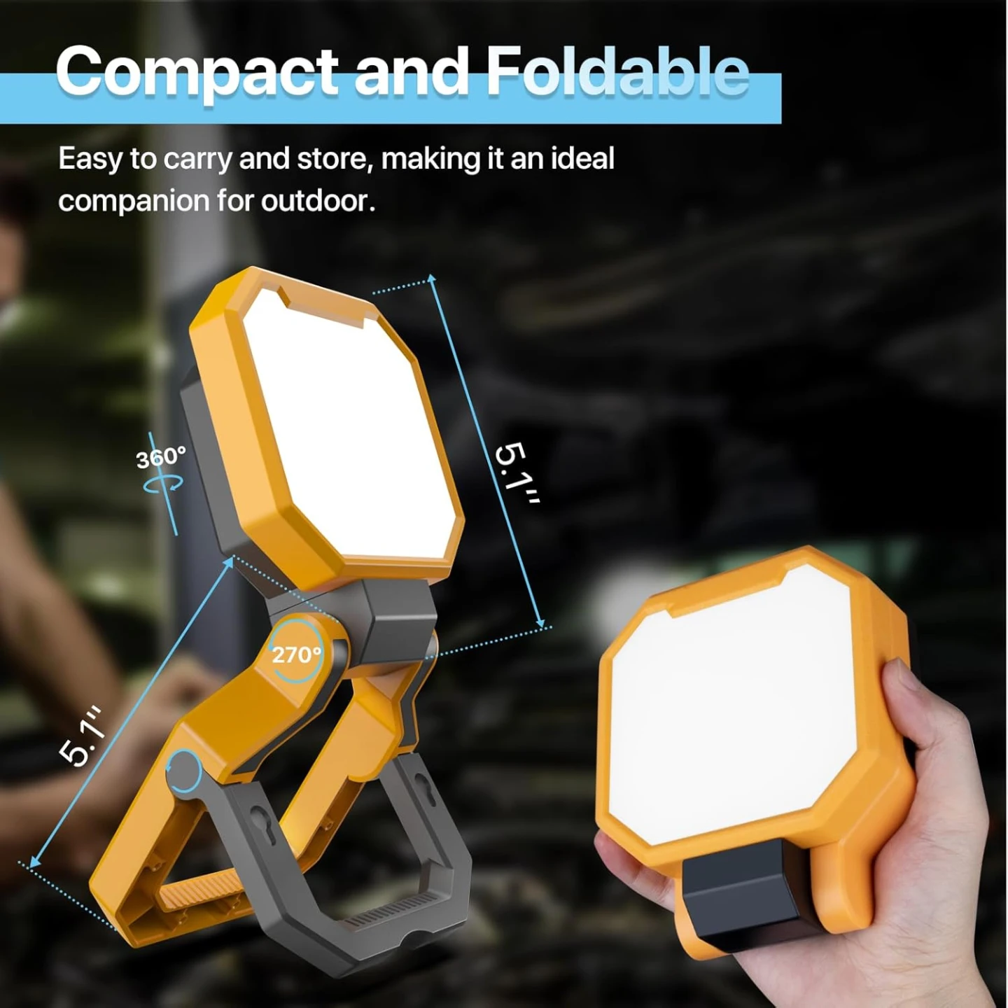 Portable, Dimmable:The magnetic work light rechargeable is adjustable in three modes, high, medium, and low brightness. Foldable stand with 360° rotation. Folded and the same size as the lamp, compact size and easy to carry!