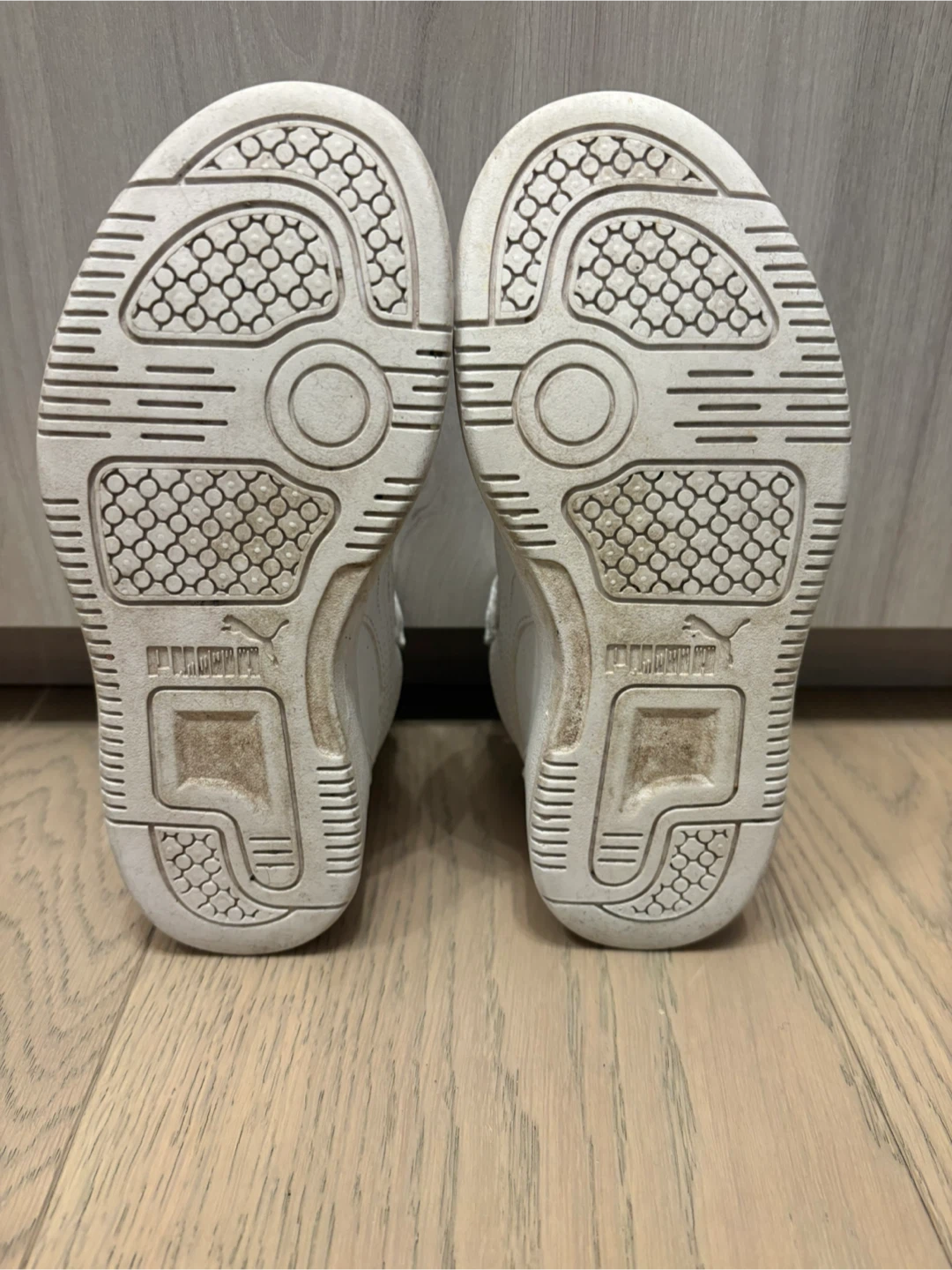 Selling a pair of Puma Rebound Street V2 high-top sneakers in a size US 13. They are white and show some signs of wear, as you can see in the photos. Still lots of life left in them!