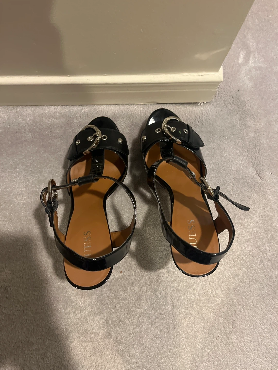 Guess Black Heeled Gold Buckle Sandals