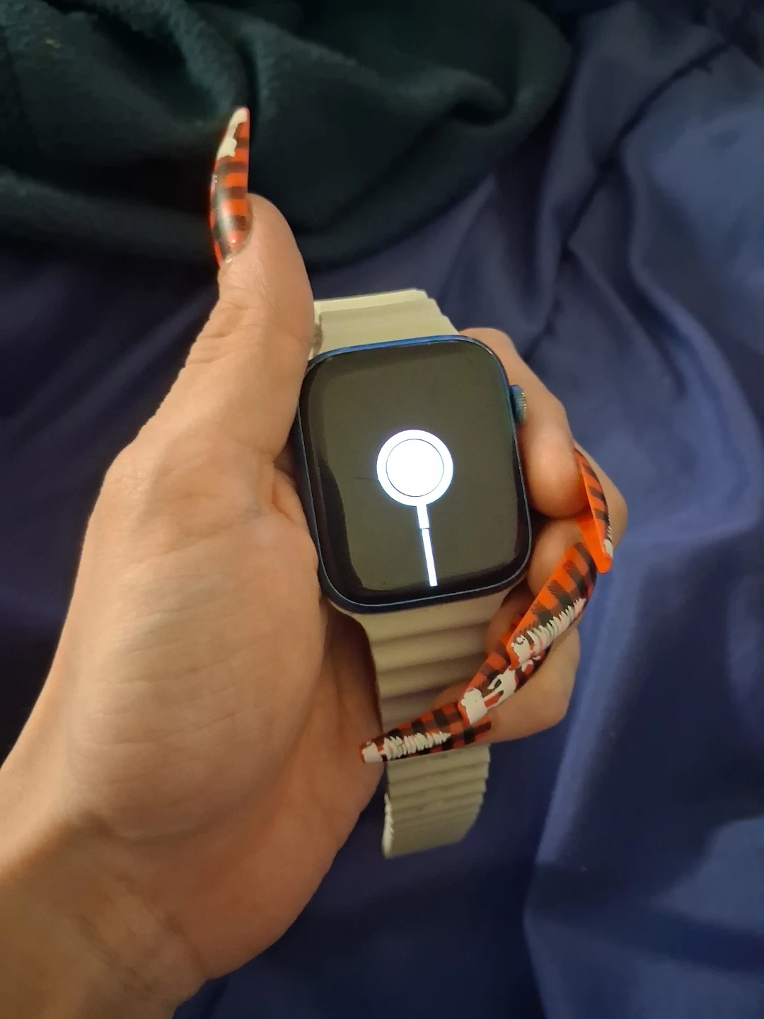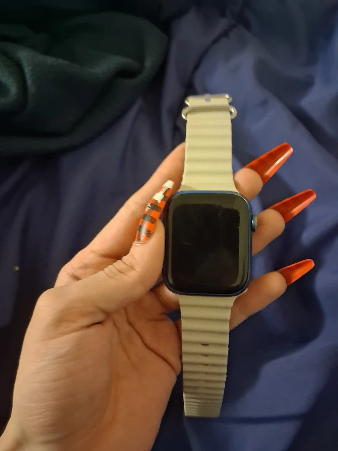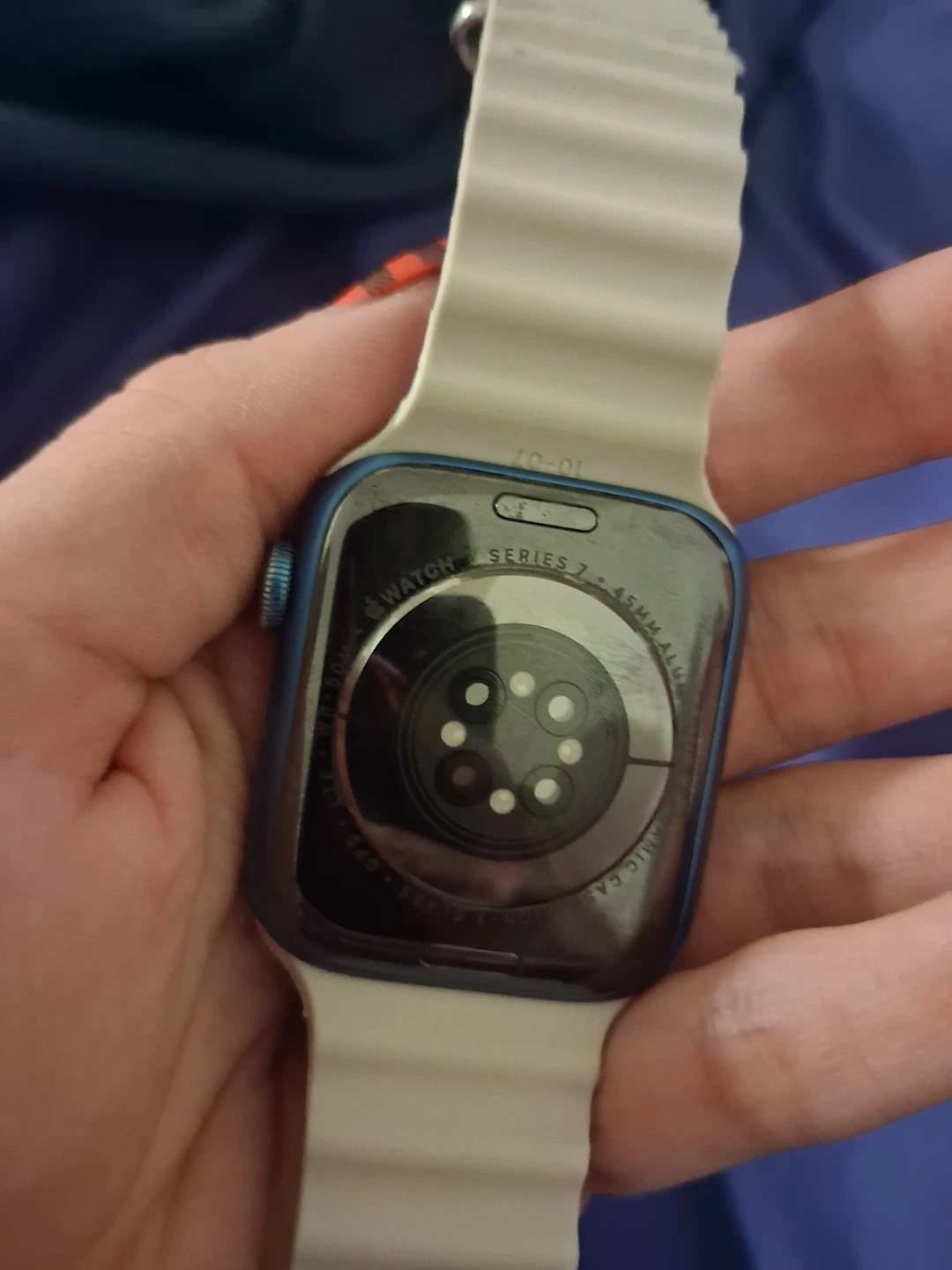 Selling an Apple Watch Series 7 with a 45mm blue aluminum case. It comes with a comfortable, light-colored band. Great for tracking your fitness and staying connected! Price is FIRM. Comes with the charger.