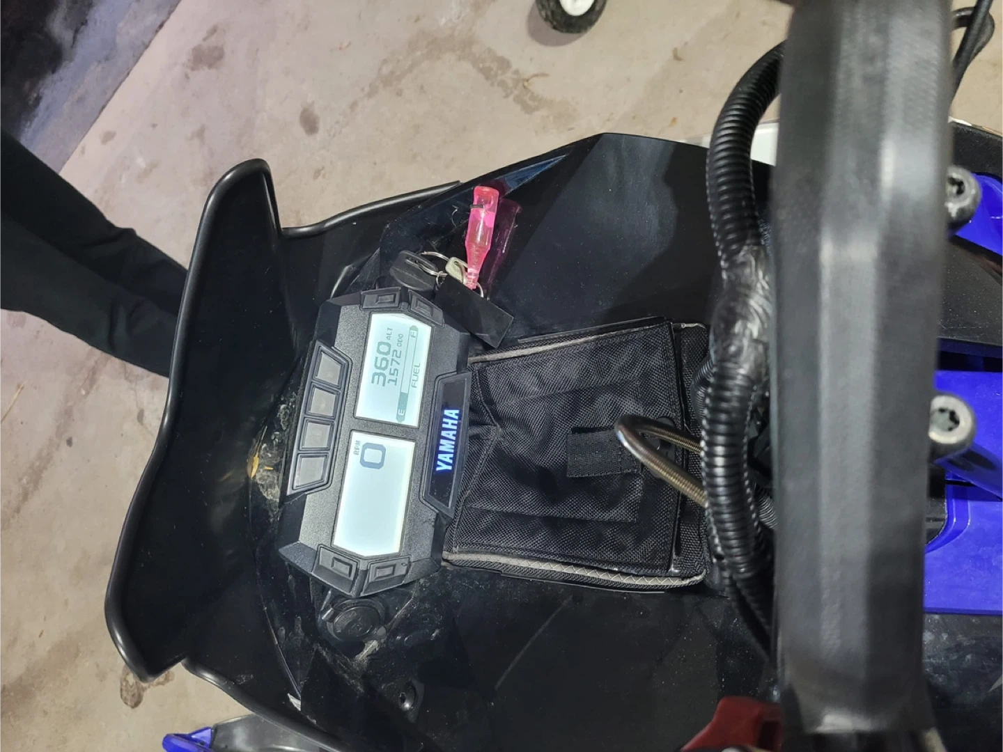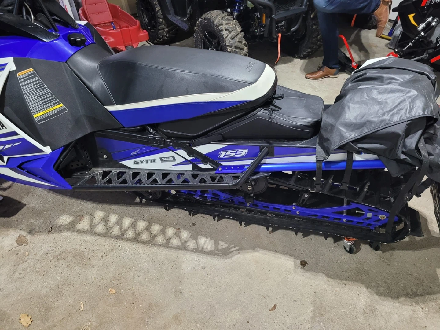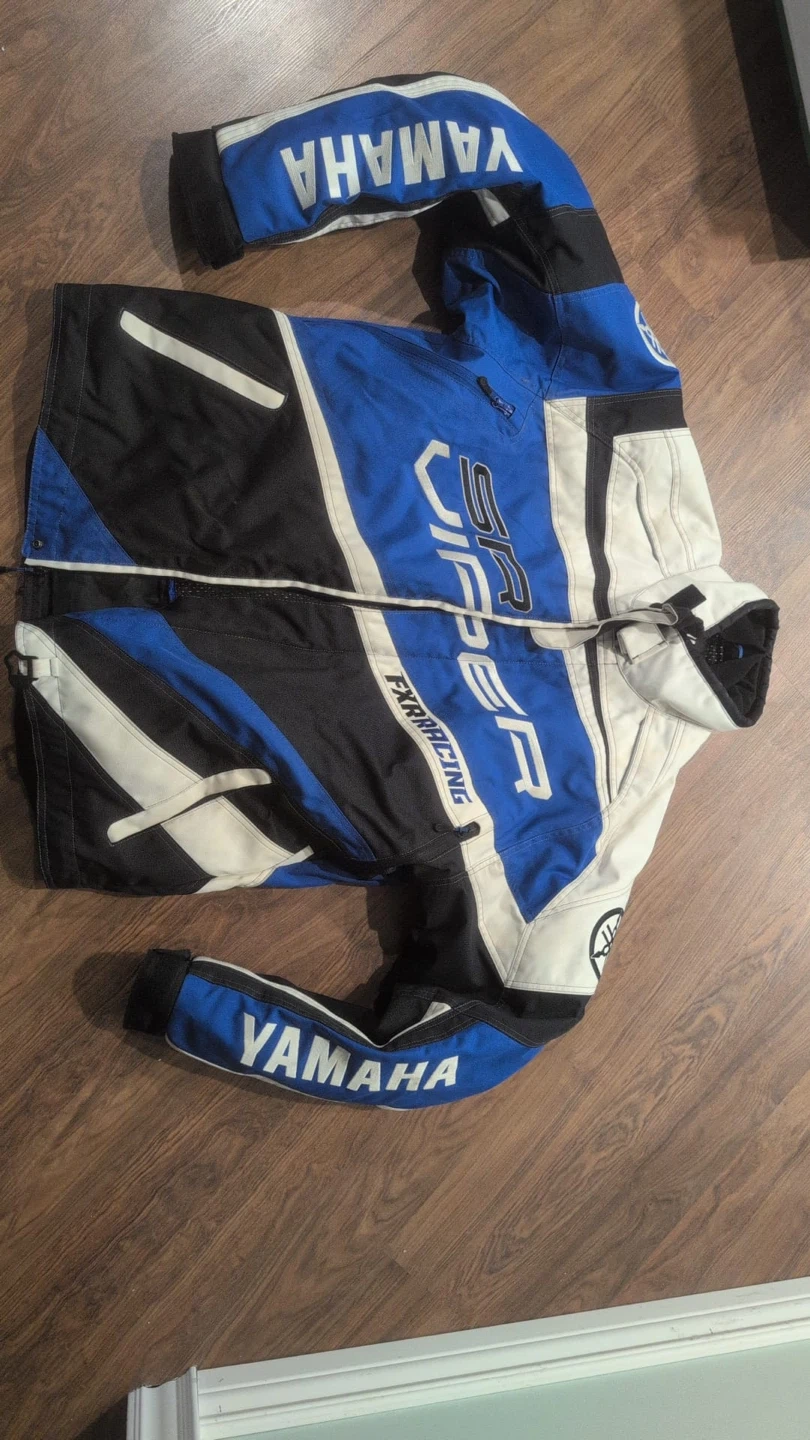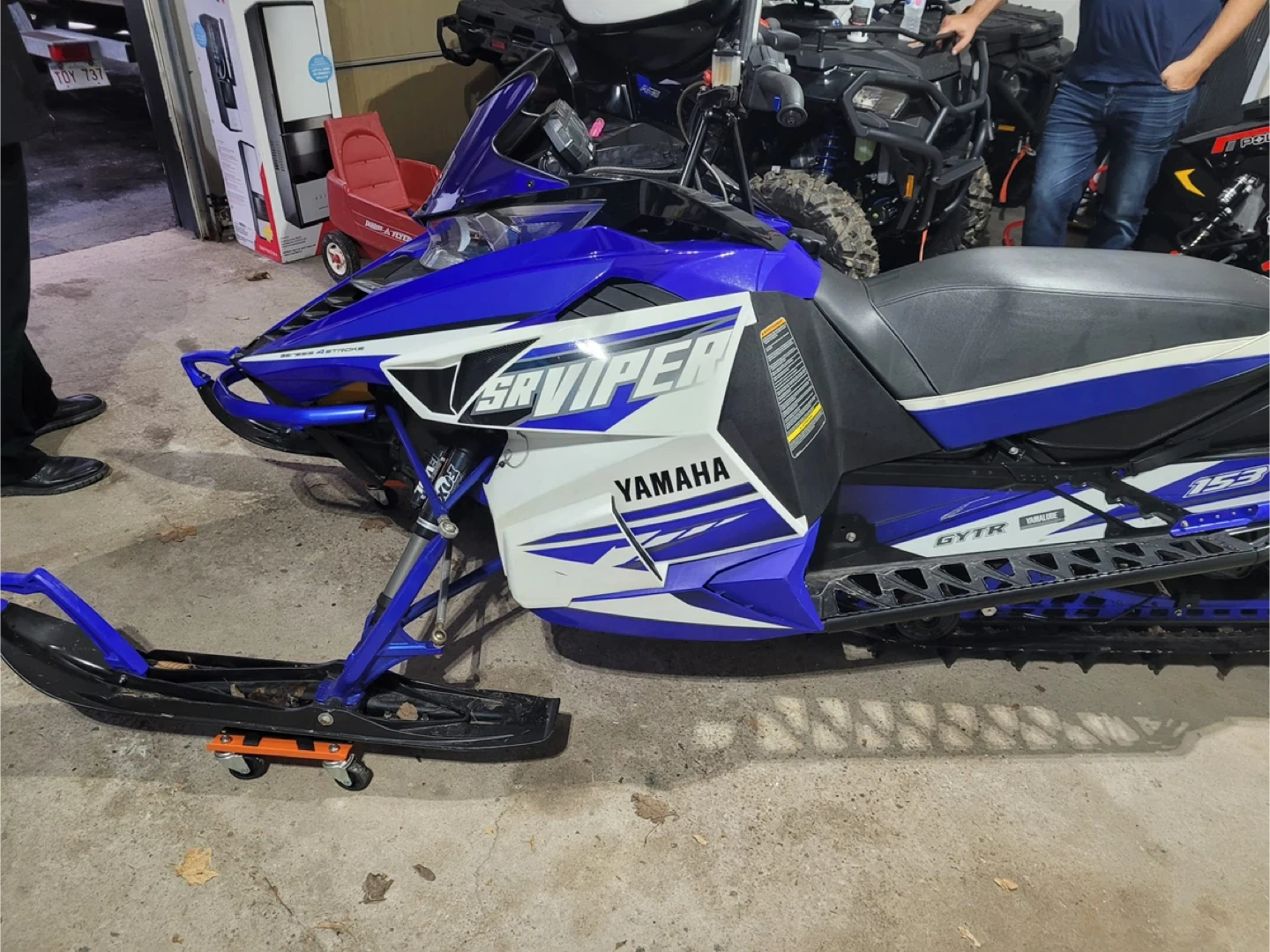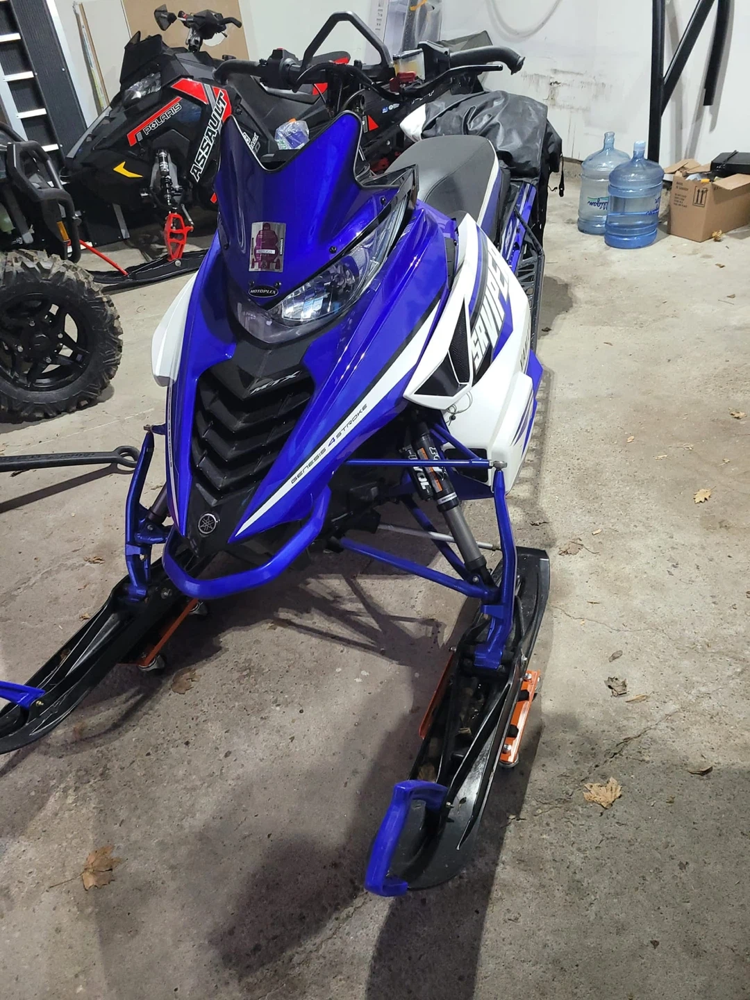 Selling a Yamaha SR Viper 153 snowmobile. It features a blue and white design. It looks like it's ready for the winter season! Comes with matching Yamaha jacket and cover Optional double trailer-$3000 extra