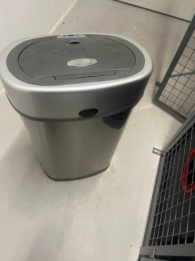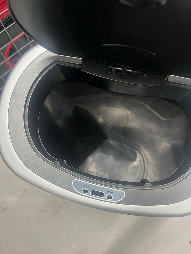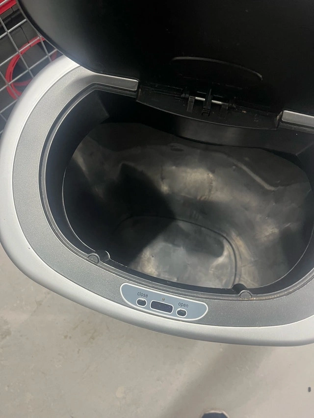 Good for: Home, office, or someone who wants an automatic trash can at a lower price and doesn’t mind a small fix. This is a used NineStars motion sensor trash can with a stainless steel finish. The lid opens automatically when motion is detected, offering a hands-free and hygienic way to dispose of waste. The trash can is in good working condition and has some minor cosmetic wear.
