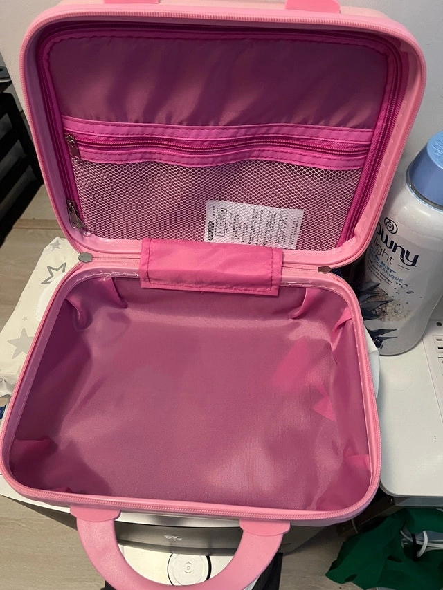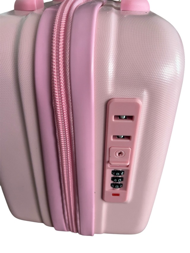 This adorable pink My Melody suitcase is perfect for travel or storage! It features a hard shell, a combination lock, and a convenient handle for easy carrying. The interior has a zippered mesh pocket to keep your belongings organized. This item is in good condition and ready for its next adventure!
