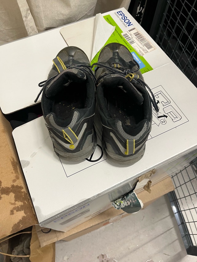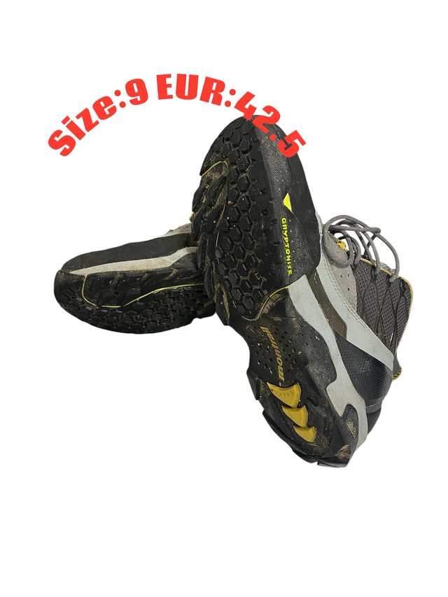 These are well-loved Hi-Tec hiking shoes in a men's size 9, perfect for hitting the trails! Despite being used, they're ready for more adventures. Additional details: