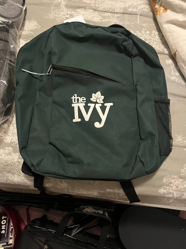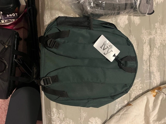 This is a brand new The Ivy backpack, perfect for school, work, or travel. It features a spacious main compartment, a front zipper pocket, and adjustable shoulder straps. Features: * Spacious main compartment * Front zipper pocket * Adjustable shoulder straps This bag is in new condition with tags. If this ad is still up, it's still available!