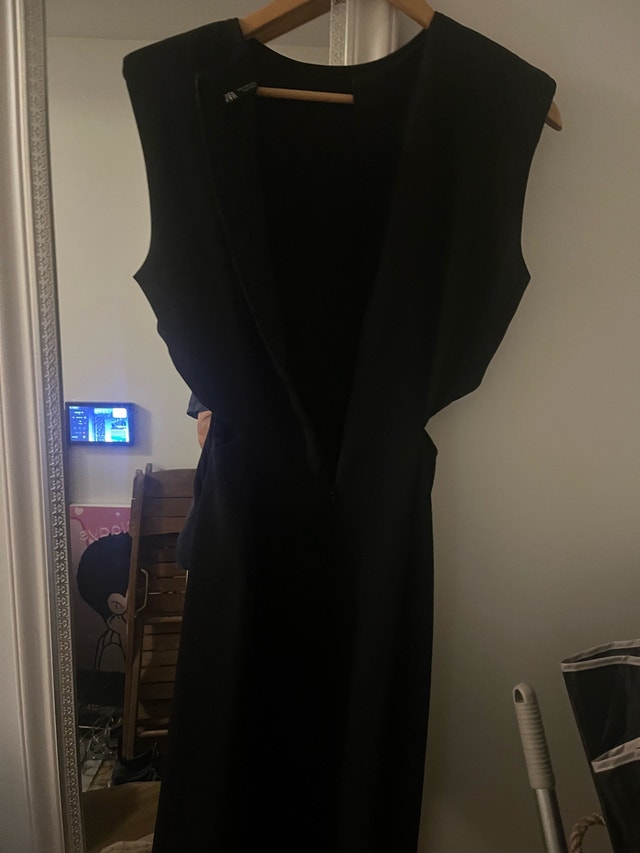 Elevate your wardrobe with this Zara black dress, a stylish and versatile piece perfect for any occasion! This dress features a chic design with cut out accents, adding a touch of modern flair to a classic silhouette. Please note that this dress has been worn, but it remains in good condition. If the ad is still up, it's still available!