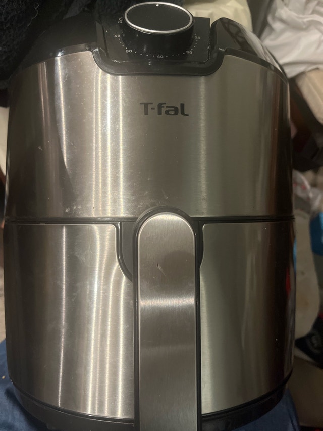 This is a T-Fal Air Fryer with a compact design and user-friendly manual controls. This used air fryer is great for whipping up your favourite snack foods. It features adjustable temperature settings up to 200 degrees Celsius and a built-in timer for easy cooking. If the ad is up, the item is available!