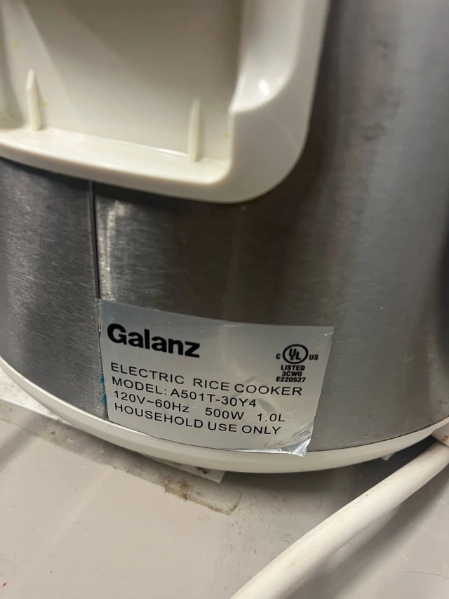 I'm selling a used Galanz electric rice cooker, model A501T-30Y4, perfect for cooking up to 1.0L of rice with its 500W power. This handy appliance is in good working condition and ready to make delicious rice dishes.