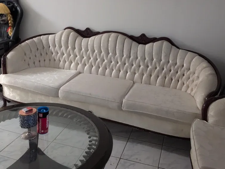 Selling a lovely vintage-style sofa! It features a cream colour with a tufted back. Perfect for adding a touch of elegance to your living space